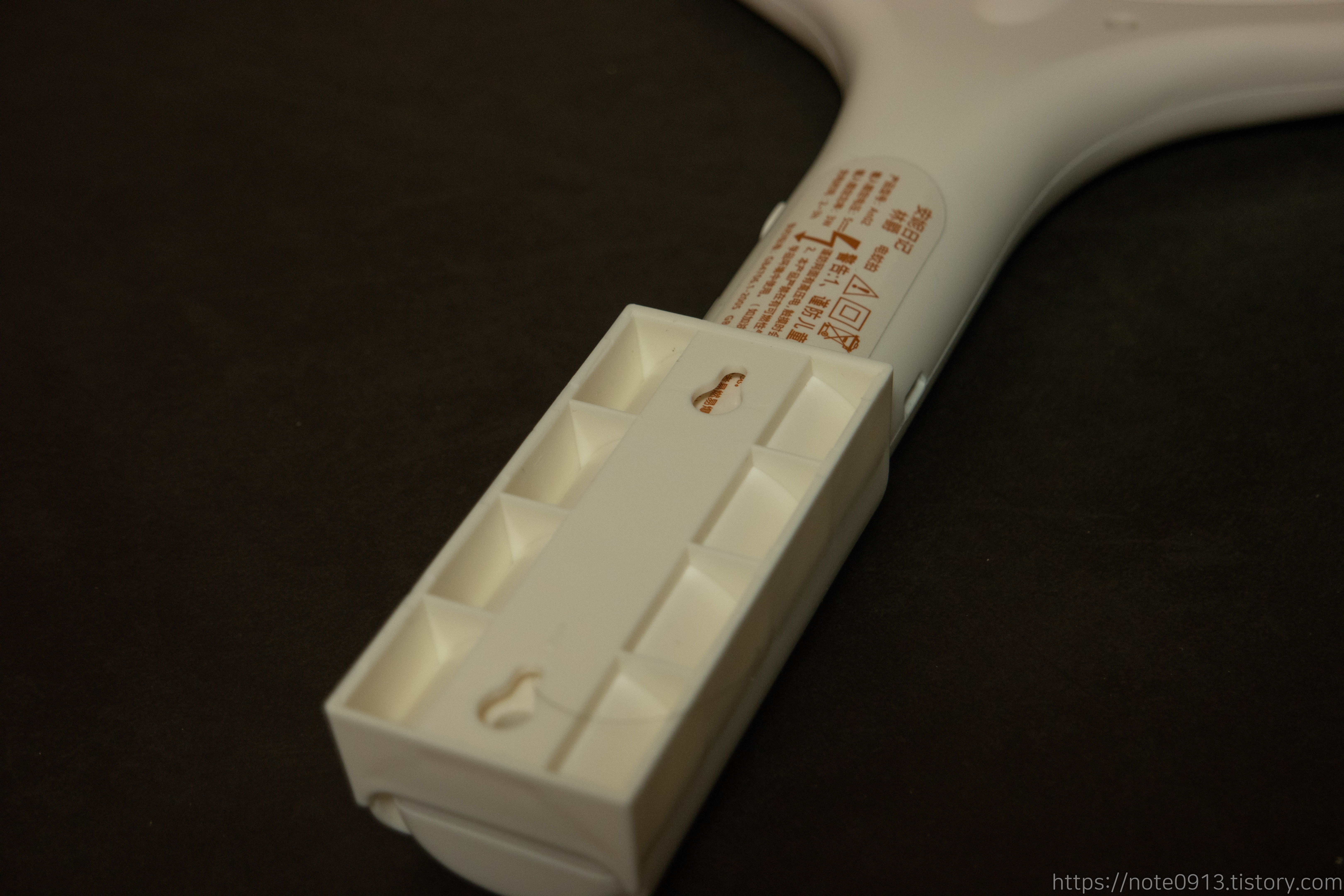 손잡이 옆에는 스위치가 있습니다. 슬라이드 스위치와 일반 스위치가 있는데 슬라이드 스위치는 전원/ 모드 선택 용도이고 일반 스위치는 작동을 위한 스위치입니다.