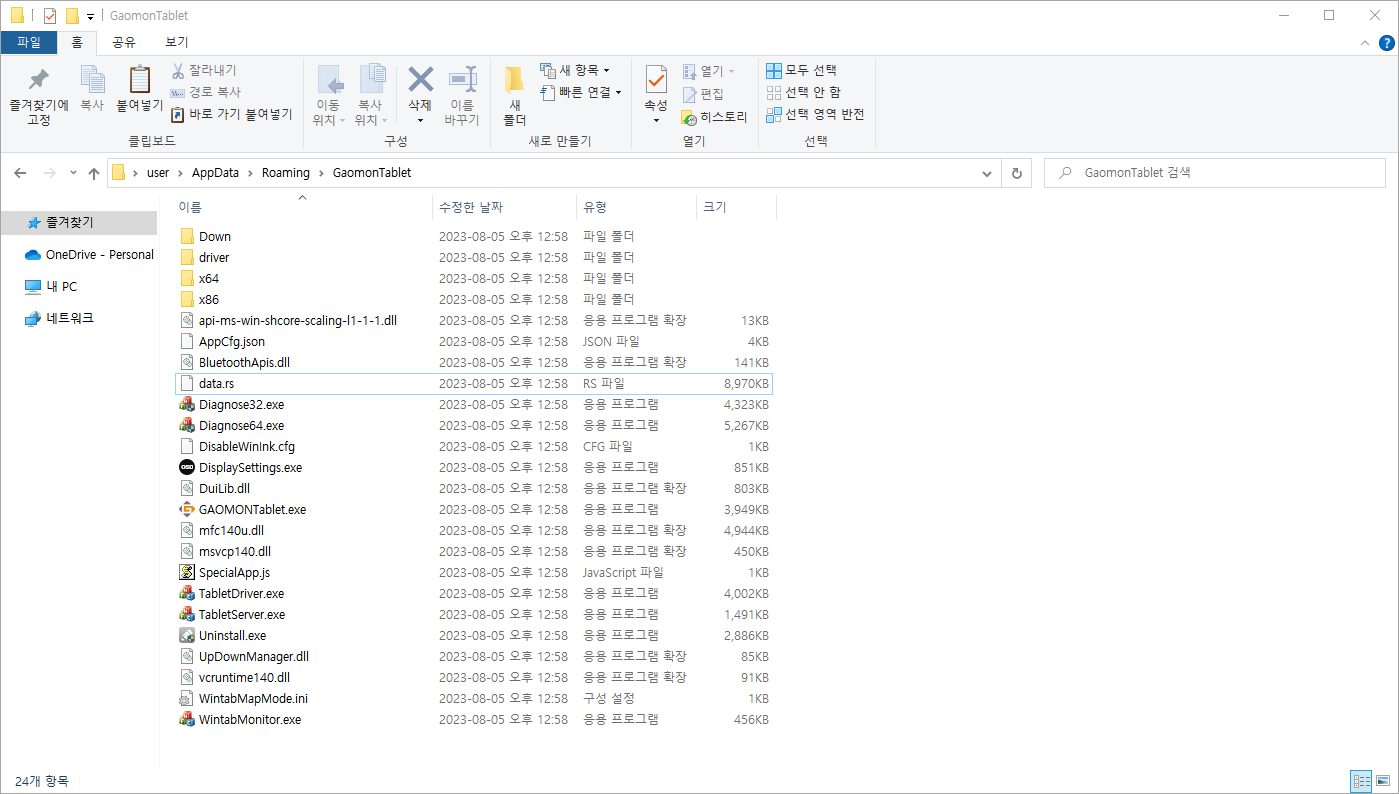 가오몬 드라이버 설치폴더 경로는 C:\Users\사용자 이름\AppData\Roaming\GaomonTablet 입니다.