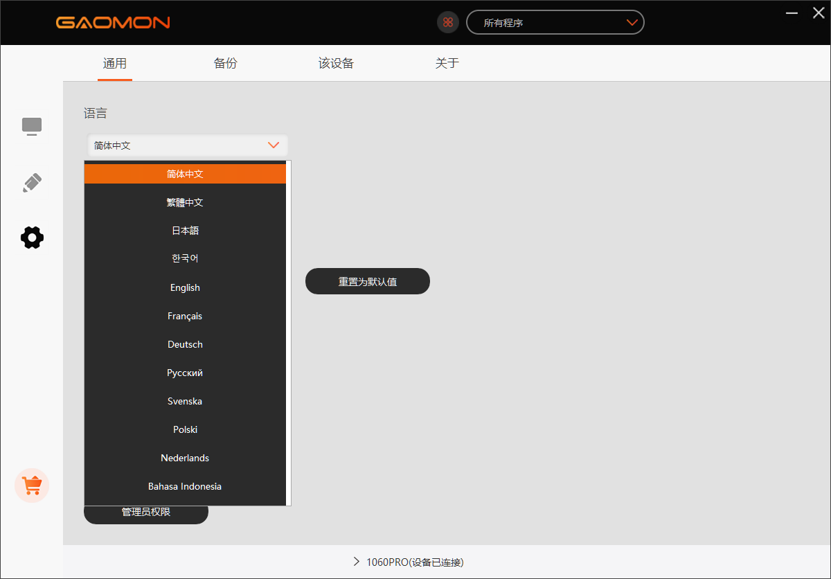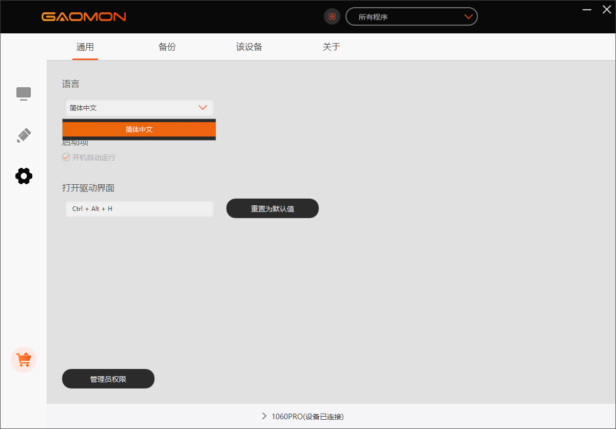 이 두 타블렛의 차이점이라면 1060PRO는 중국 내수용 제품이라는 점이다. 중국 내수용 제품은 연결시 중국어로만 나오게 설정되어 있습니다.