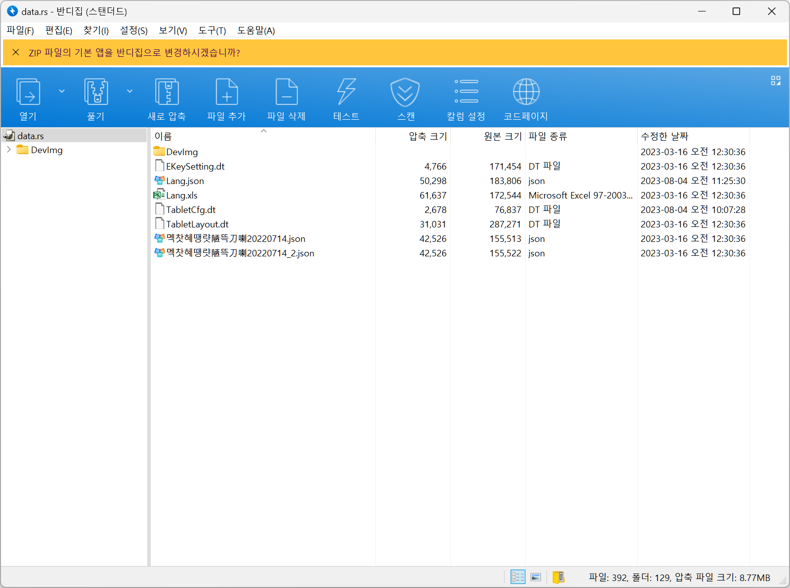이 data.rs 파일을 반디집과 같은 압축 프로그램으로열면 파일 몇개가 보입니다.