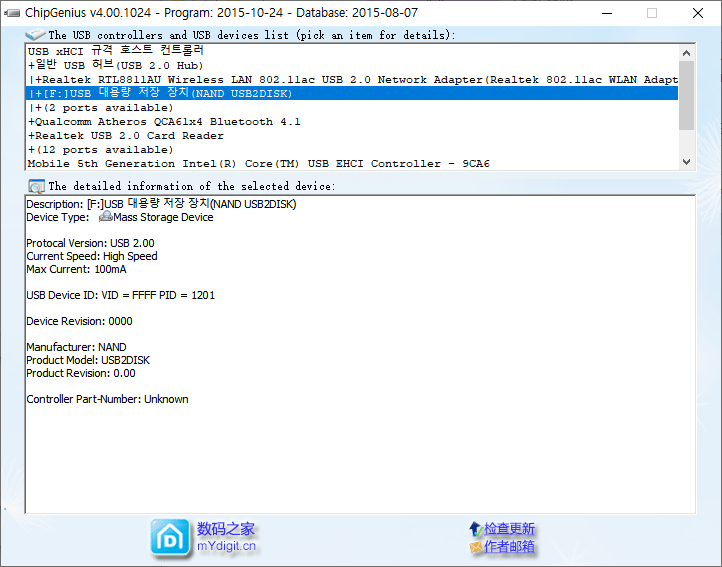 장치관리자에서는 NAND USB2DISK USB Device로 표시됩니다.