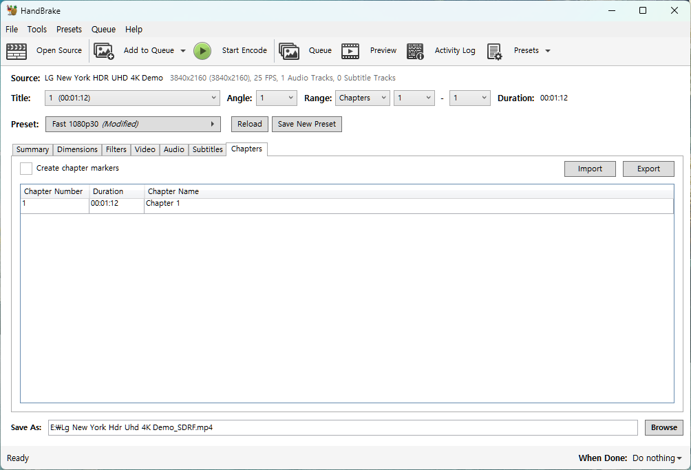 챕터 부분인데 챕터를 넣고 싶지않으면 Create chapter makers 를 체크 해제하면 됩니다.