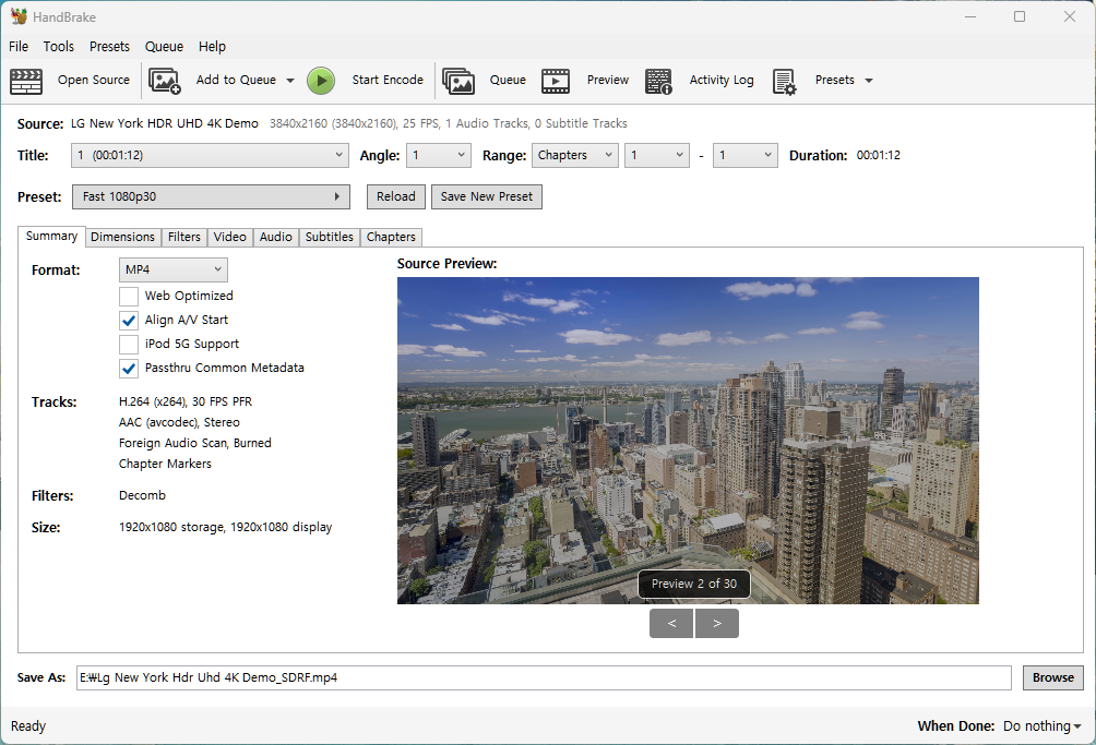 이를 톤 매핑이라고 하는데 다양한 동영상 인코더에서 이 기능을 지원하고 있습니다. 이 글에서는 핸드브레이크라는 동영상 인코더 프로그램으로 HDR 영상을 SDR 영상으로 변환해보겠습니다.