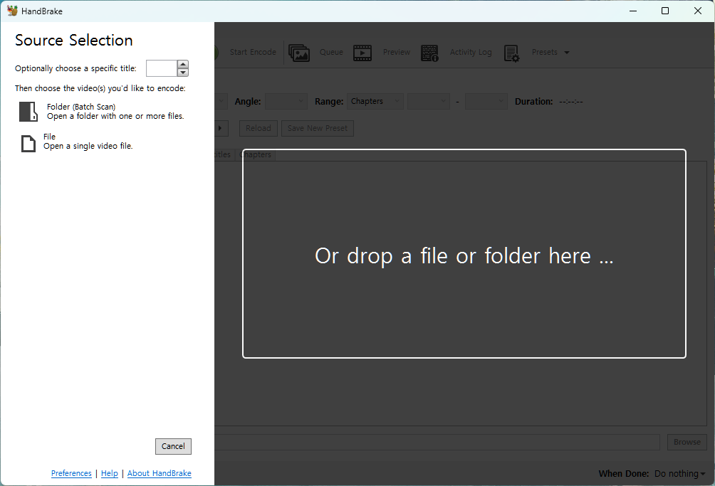 우선은 핸드브레이크를 실행하고 HDR 영상을 불러옵니다.