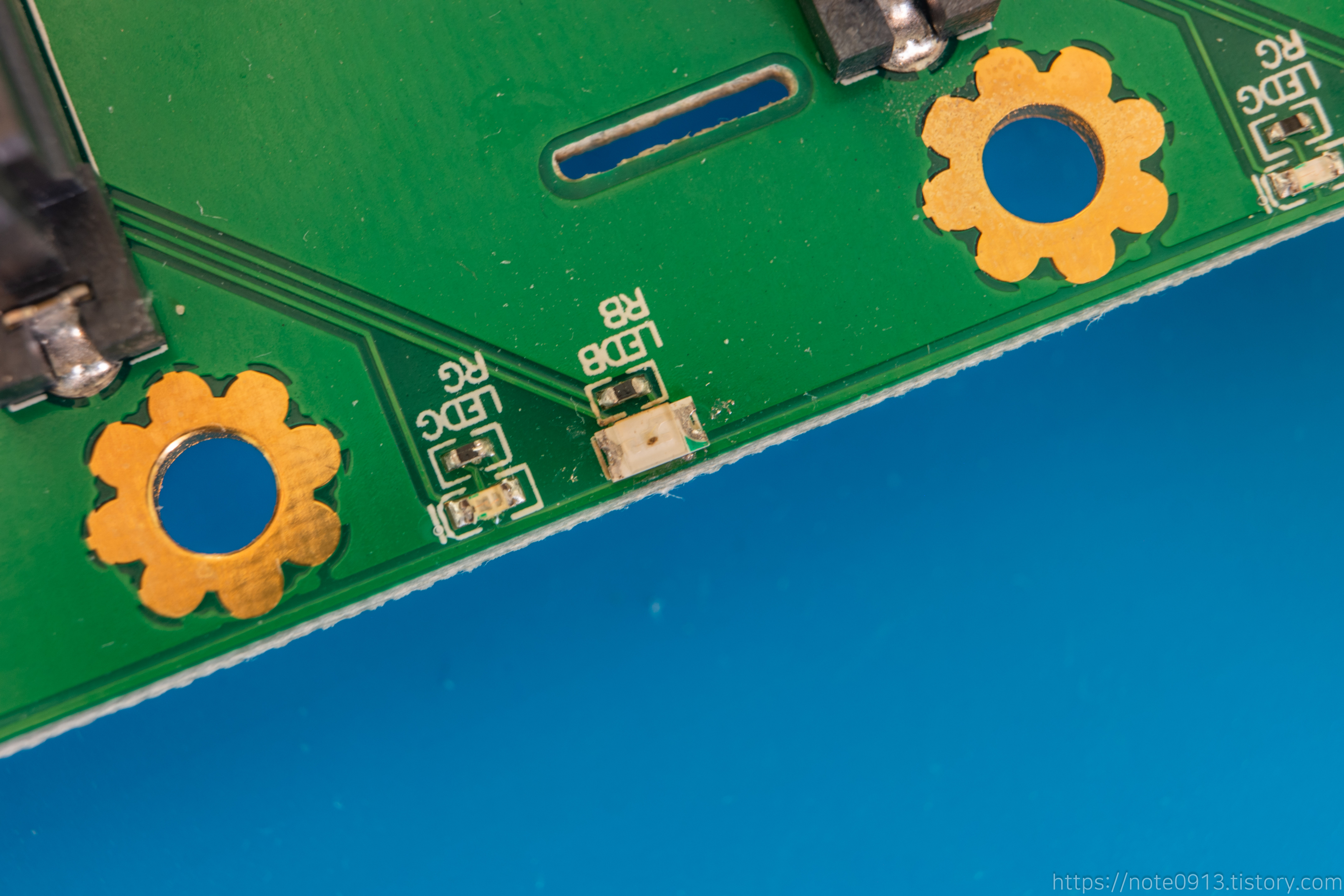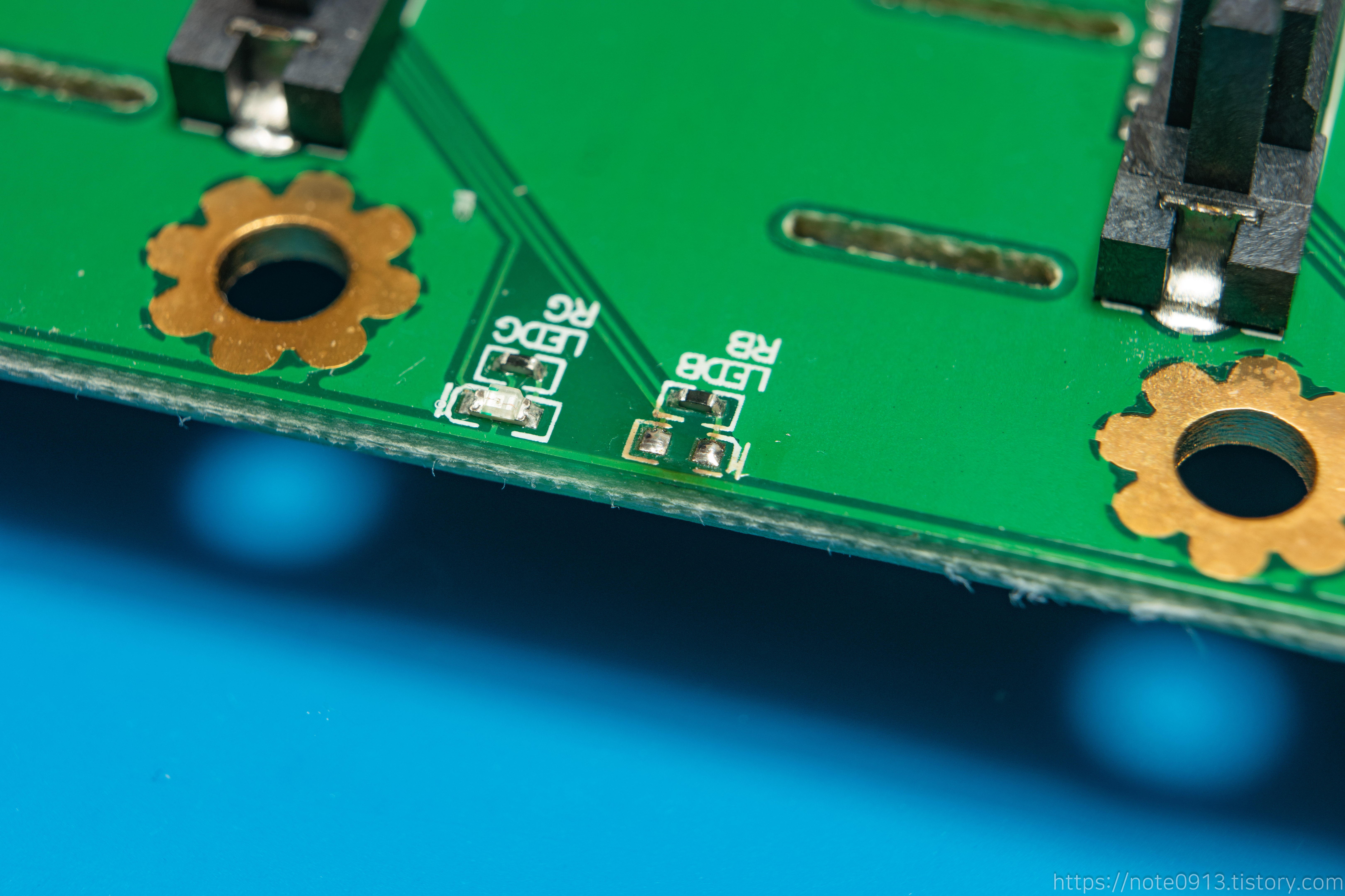 정상적으로 파란색 LED가 잘 나옵니다. 다만 사이즈가 달라서 그런지 교체한 LED가 조금 더 밝게 나오네요.