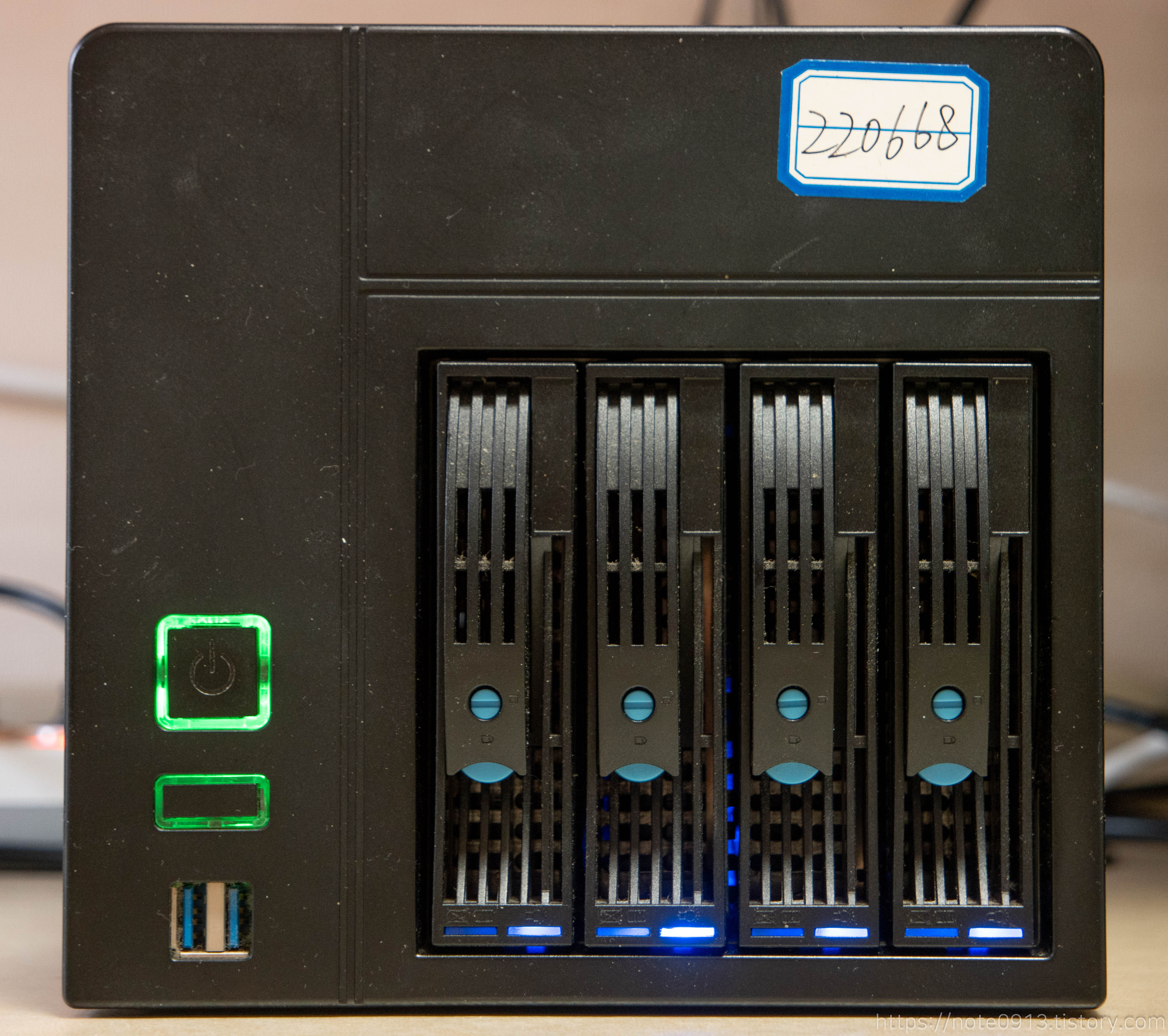 각 슬롯마다 LED가 2개씩 한쌍으로 있습니다. 왼쪽은 하드디스크 사용 중임을 알려주는 초록색 LED이고 오른쪽은 하드디스크의 전원이 인가되었는지 알려주는 파란색 LED 입니다.