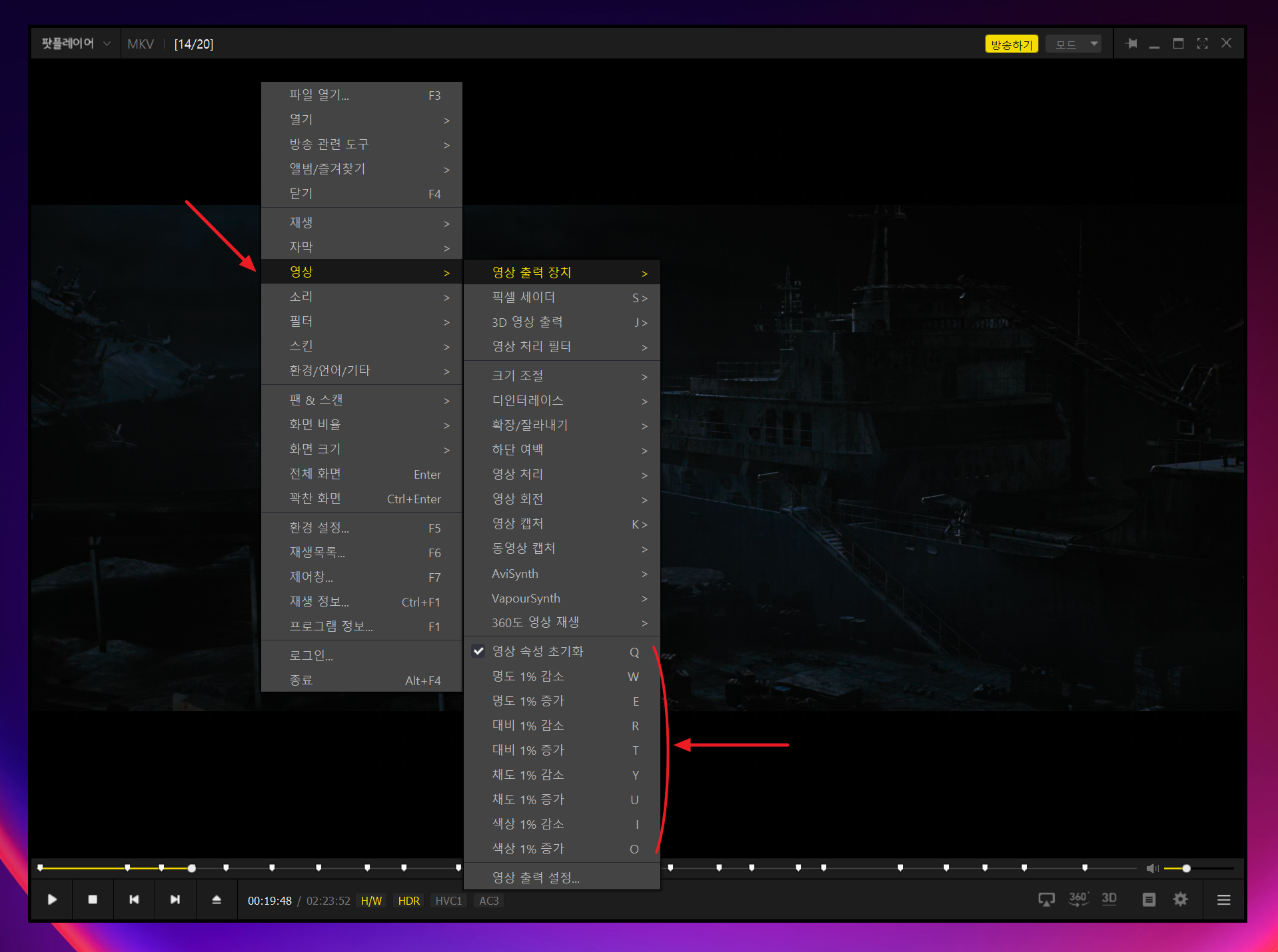 팟플레이어 영상 속성 조절하기
