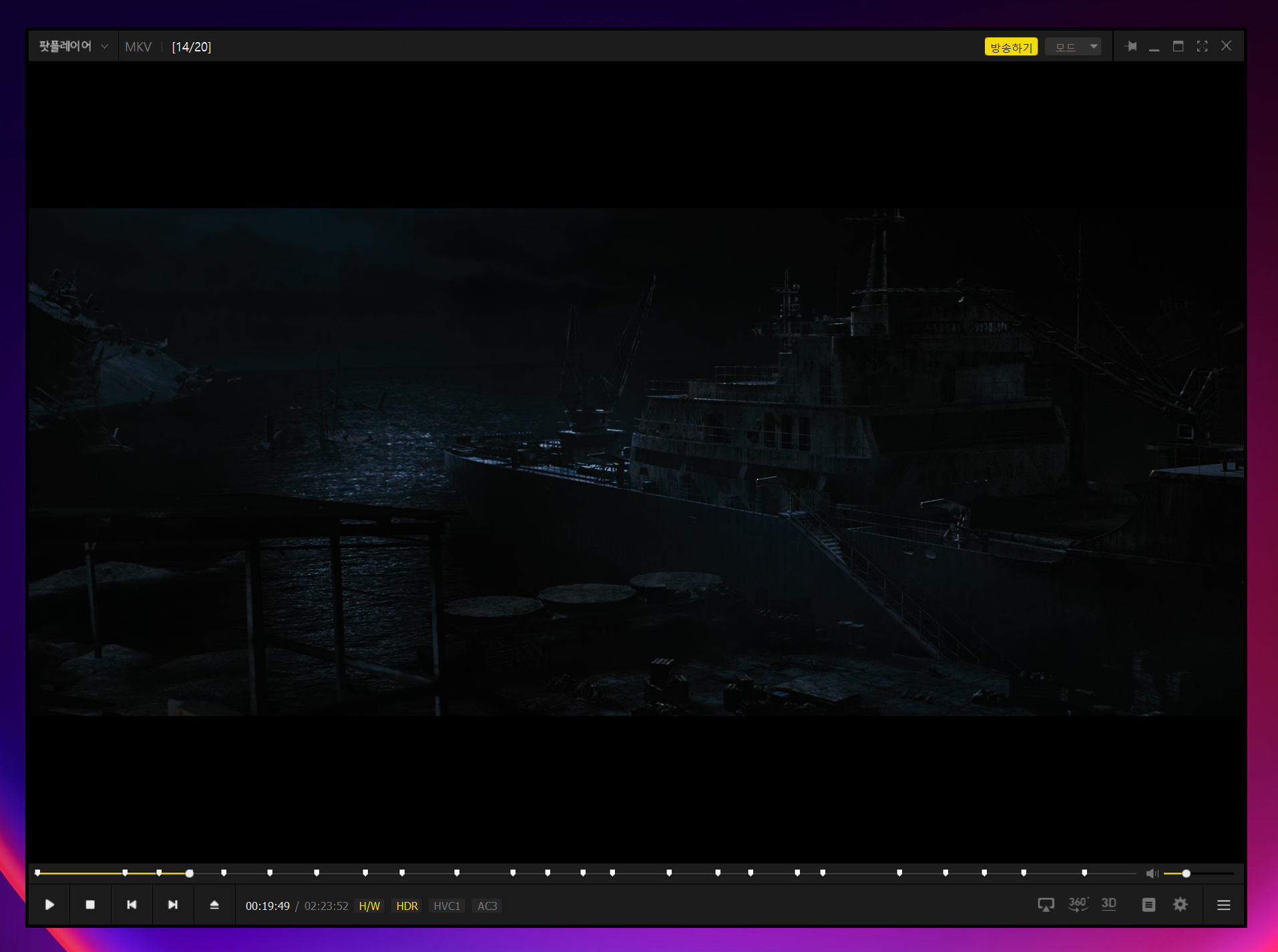 이럴 때, 팟플레이어에서 기본적으로 제공하는 밝기조절을 통해서 밝게 볼 수 있는 방법이 있습니다.