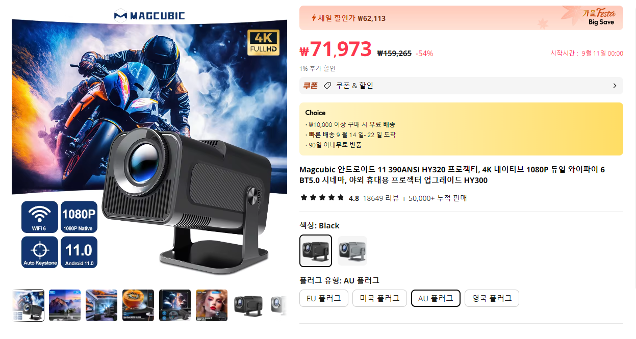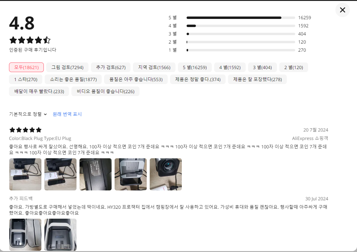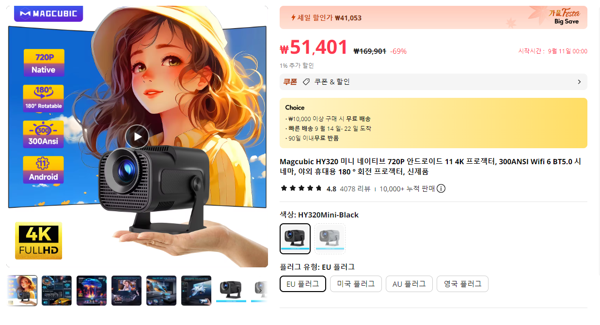 최근에 알리익스프레스에서 구매하고 싶은게 생겼습니다. 바로 빔프로젝터인데요. 사실 한 3~4년쯤에도 알리에서 파는 20만원짜리 빔프로젝터를 살까말까 고민했었는데 가격도 비싸고, 부피도 커서 결국에는 구매하지는 않았는데 이번에 본 제품들은 가격이 10만원미만이라 이 정도면 충분히 살만하다고 생각해서 살까말까 고민 중이네요.