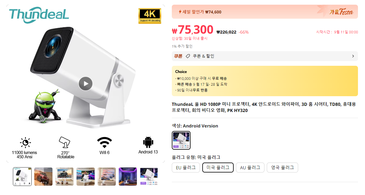 마지막은 ThubdeaL 이라는 브랜드의 TD80W라는 빔프로젝터입니다.