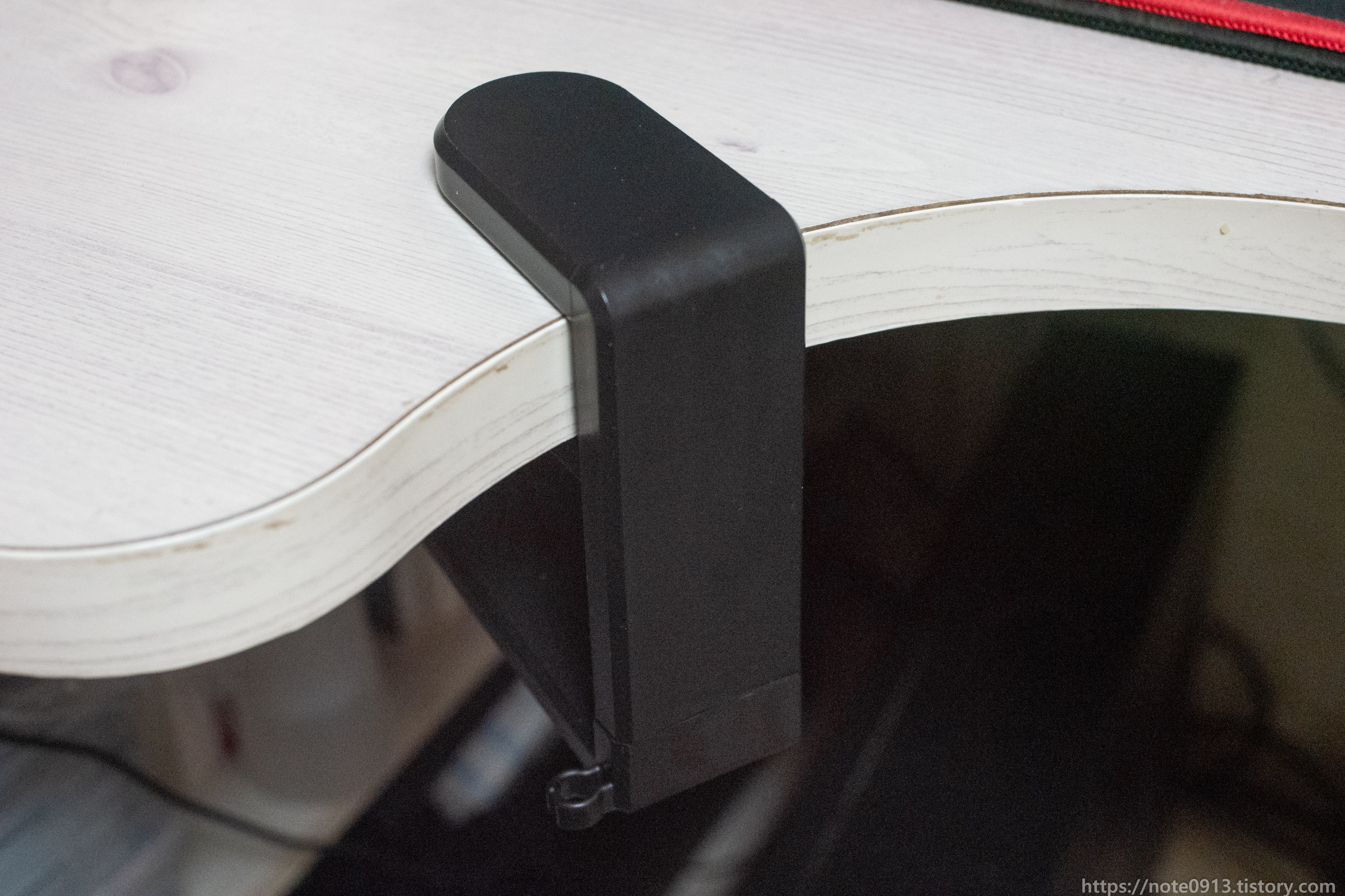 그 외에 블루투스 헤드폰인 D02 PRO 헤드폰도 거치해보았습니다. 외관이 플라스틱이라 고급스러운 느낌은 없지만 실용성은 좋은 것 같습니다. 책상 두께만 맞는다면 한번 구입해보는 것도 나쁘지 않을 것 같습니다.