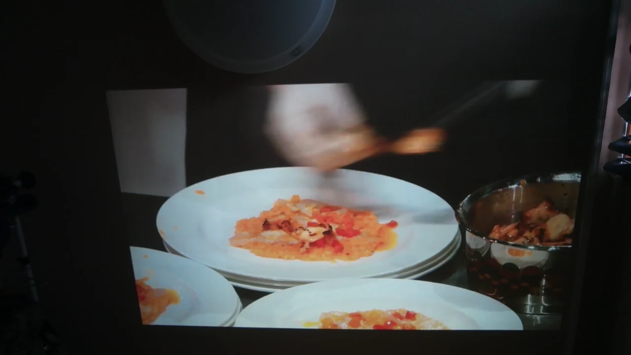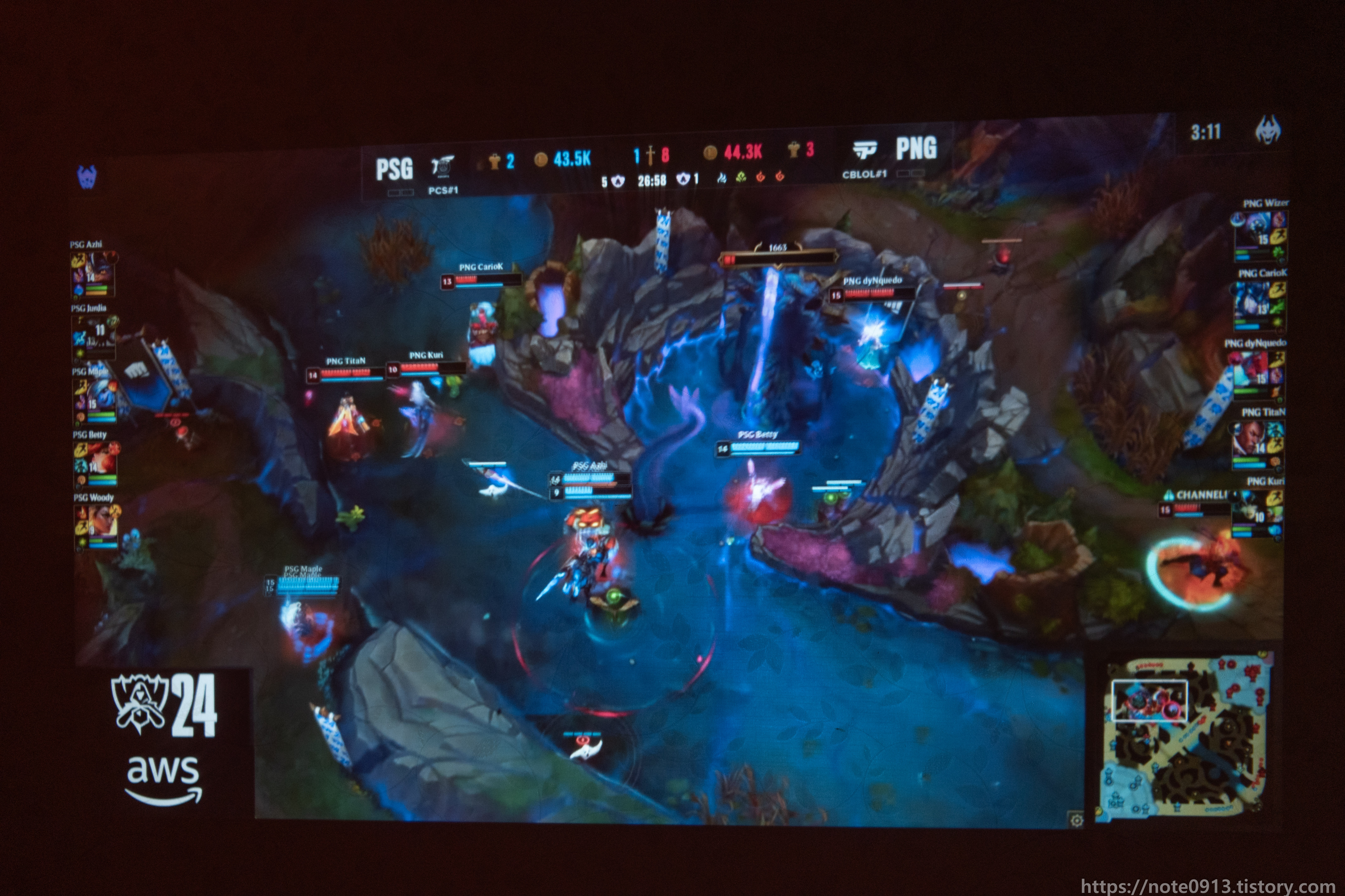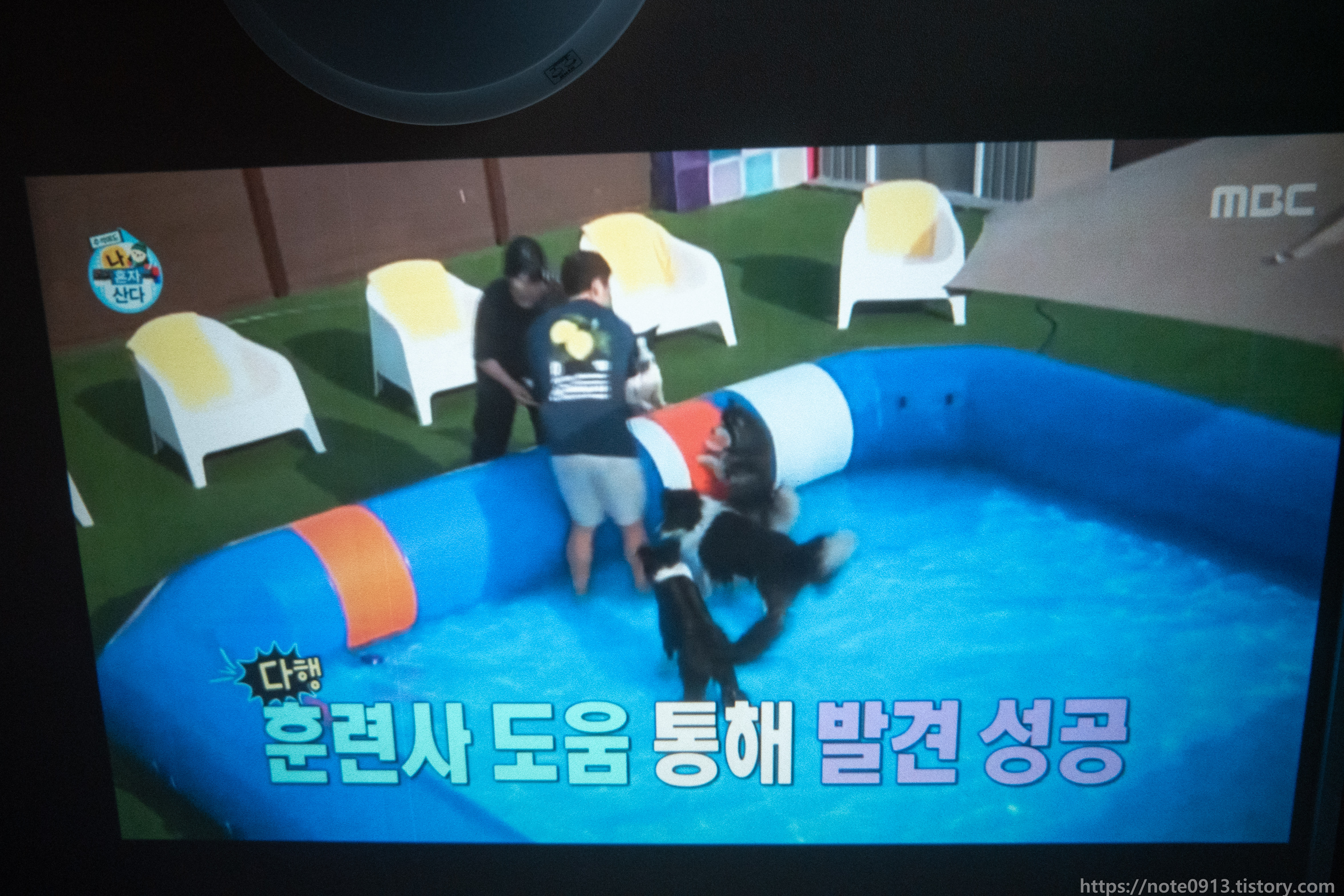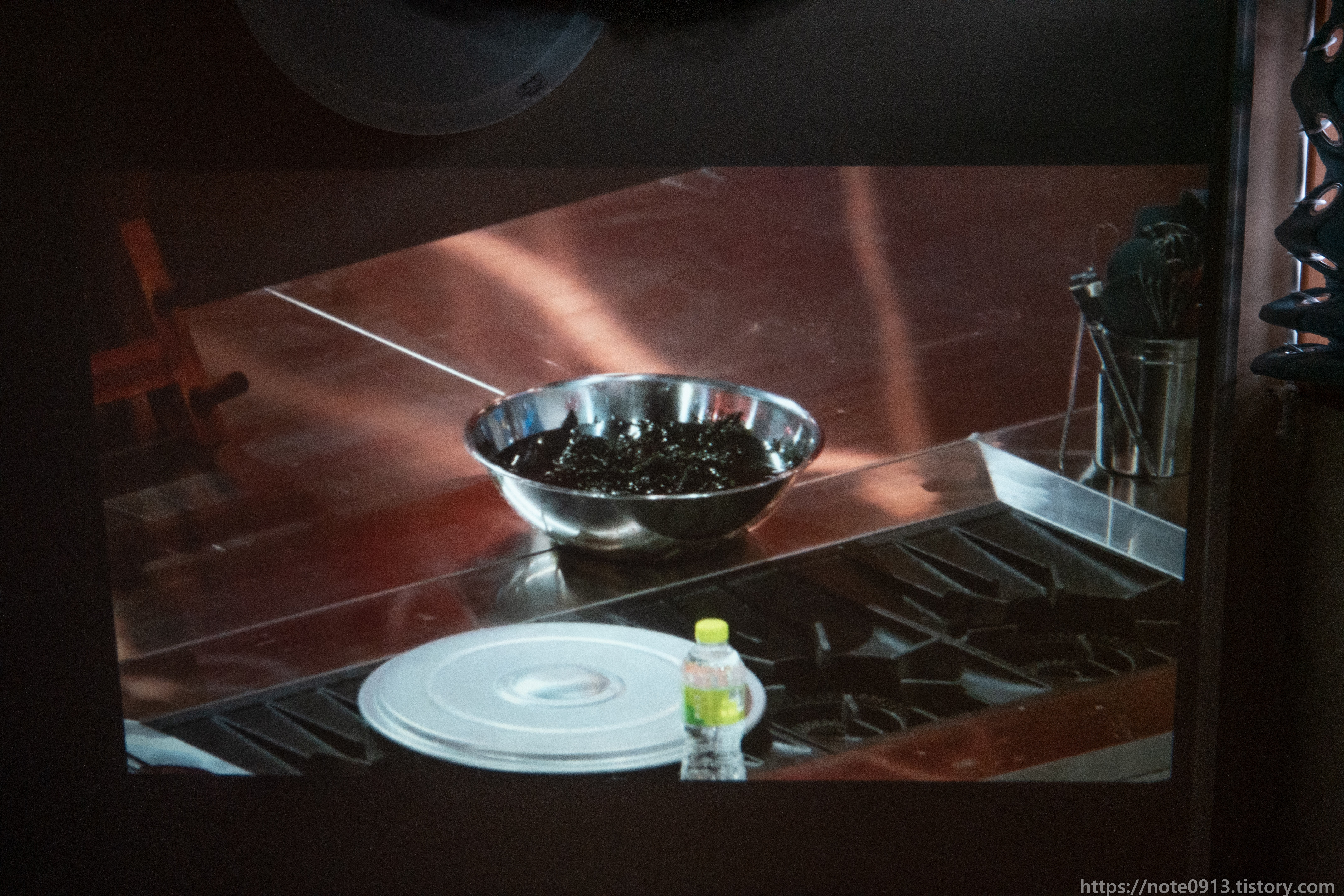 형광등이 켜져있을 때의 프로젝터 화면입니다. 어두운 장면, 검은색은 거의 보이지가 않는 정도입니다. 밝은 장면은 그나마 보이기는 합니다.