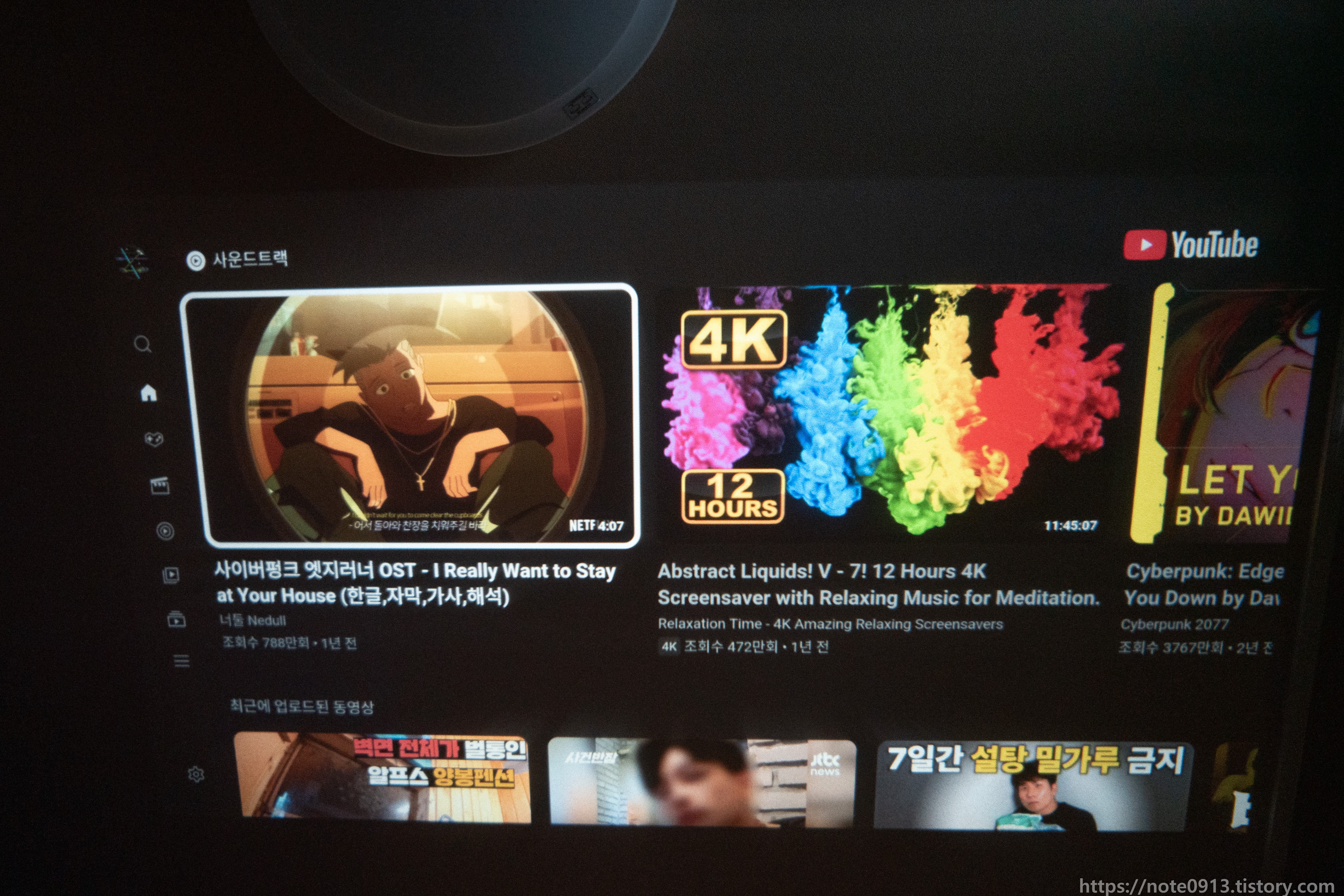 우선은 HY320 유튜브 앱을 실행해 보았습니다. 유튜브의 경우 구글 플레이스토어에서 제공하는 유튜브 for Android TV와 HY320 전용 앱스토어(HTC Appstore)에서 제공하는 유튜브 앱이 있는데 전용 앱스토어에서 설치하고 실행해 보았습니다.