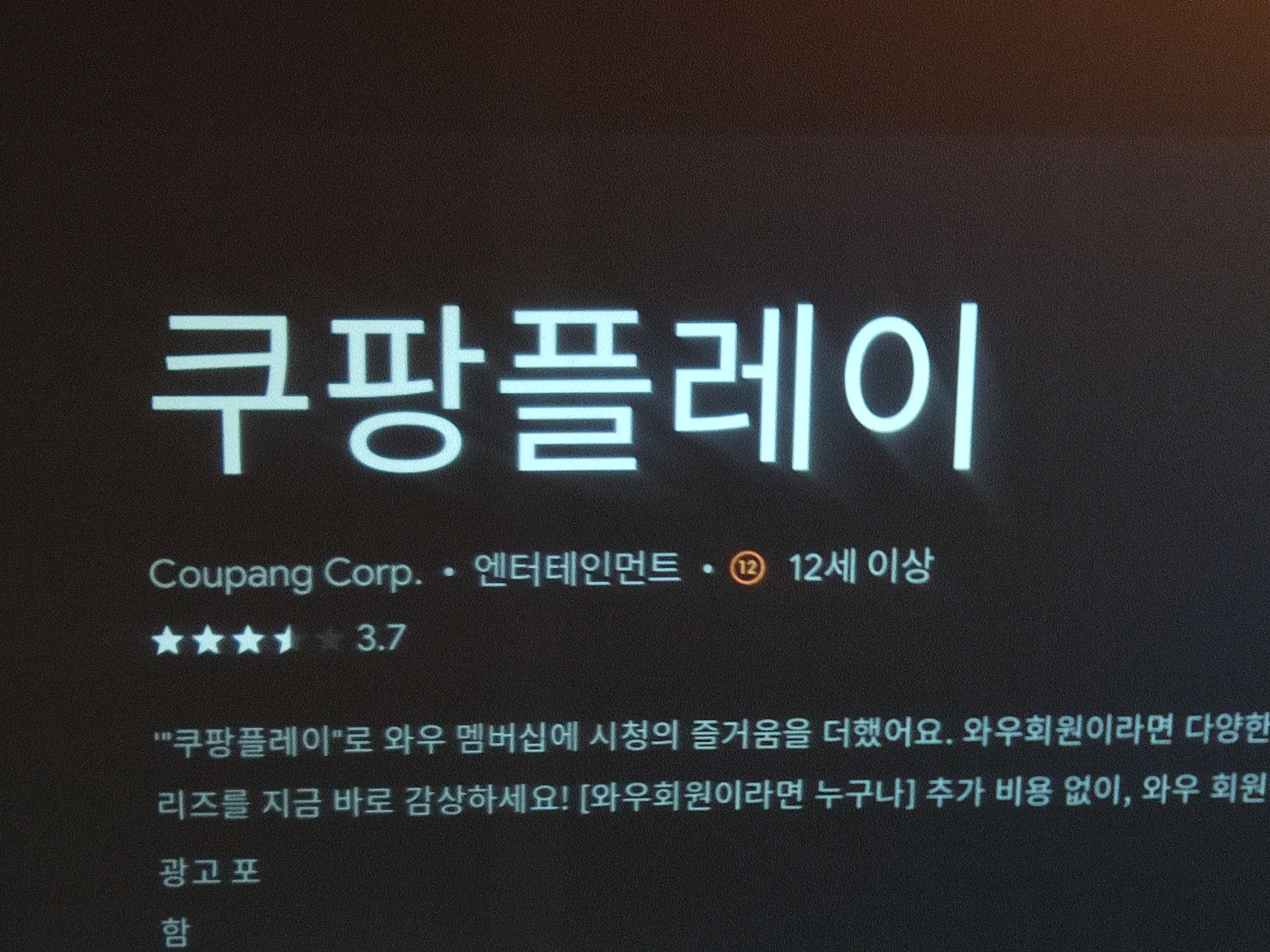 구글 플레이 스토어에서 쿠팡플레이 앱을 다운받고 실행해 보았습니다.