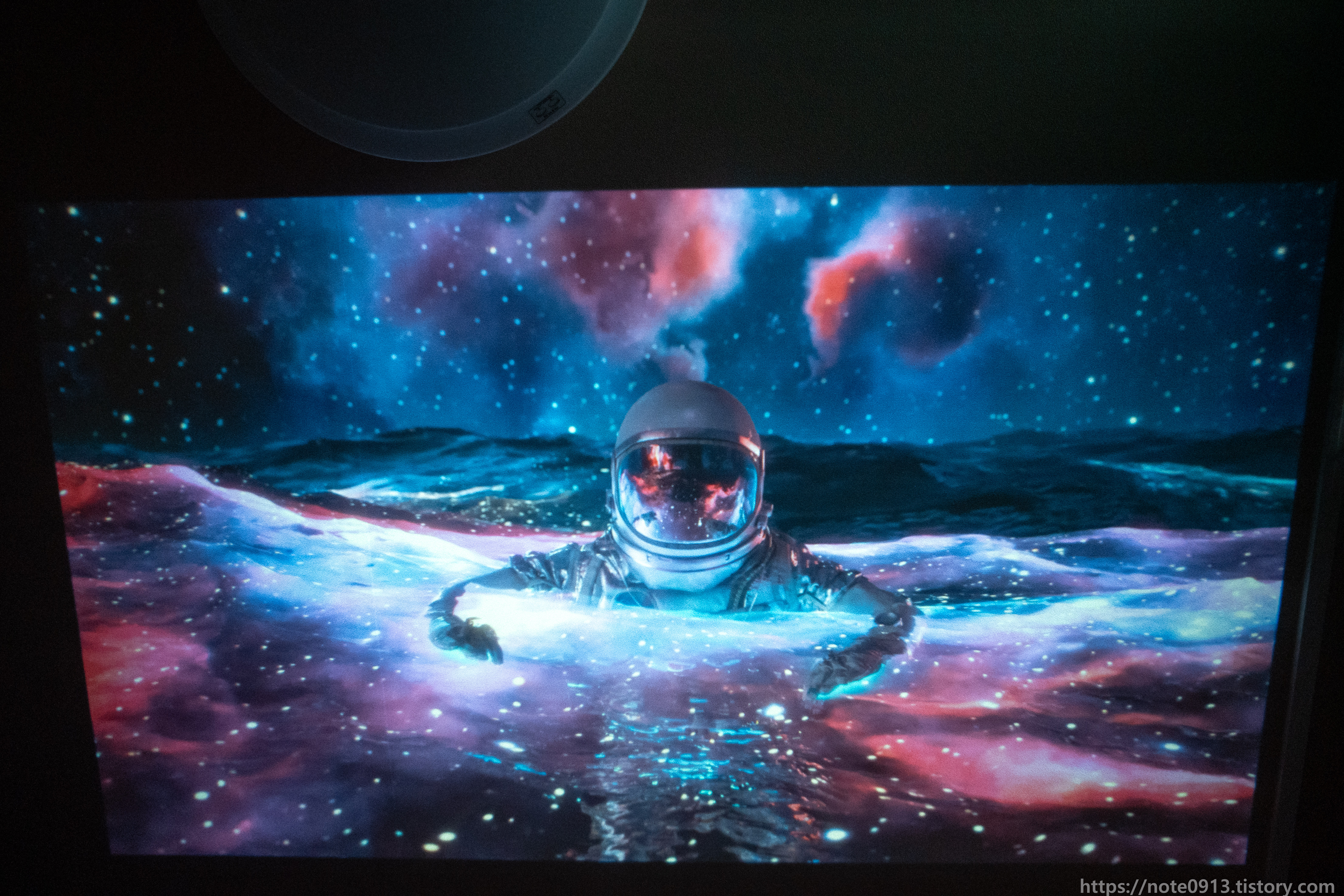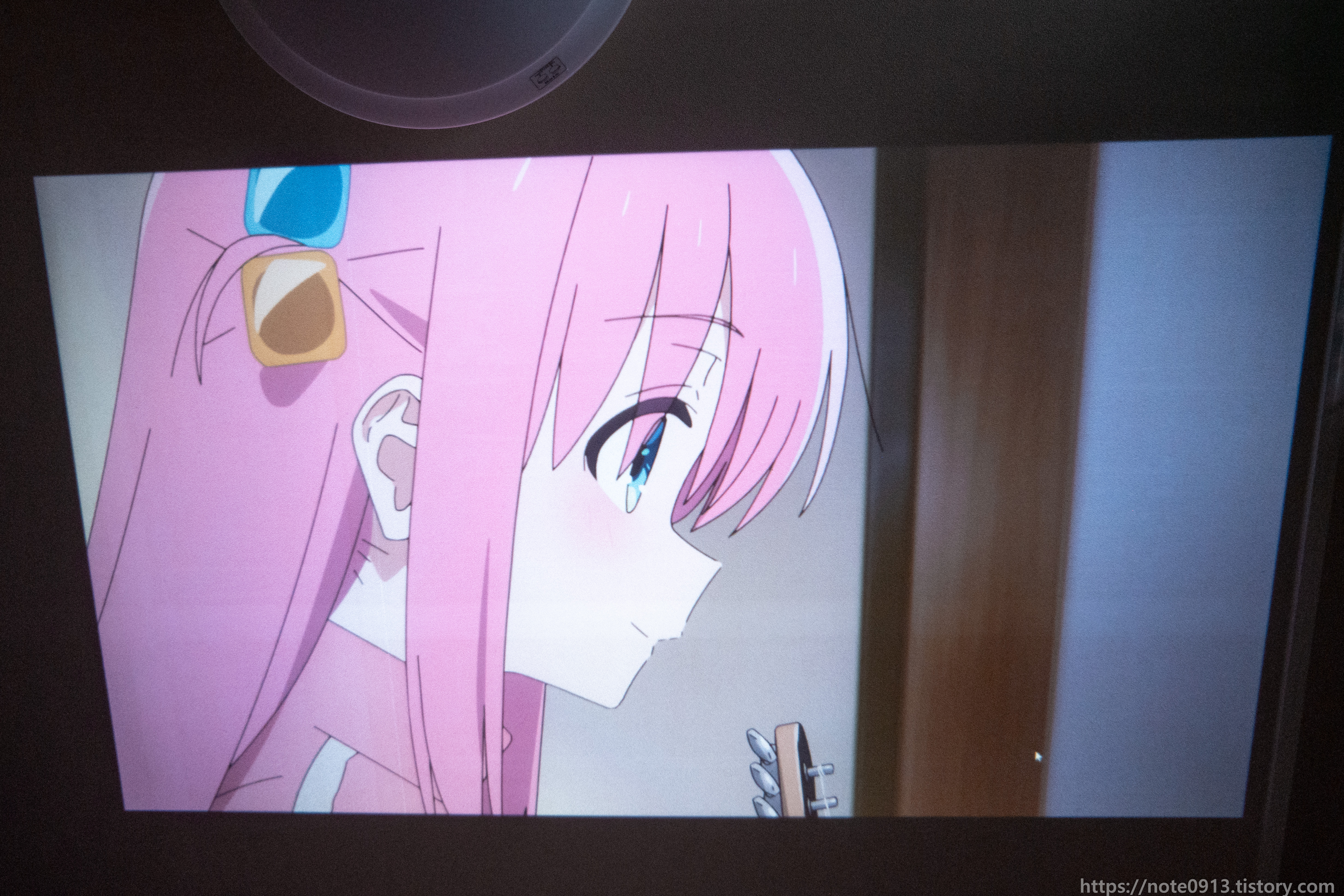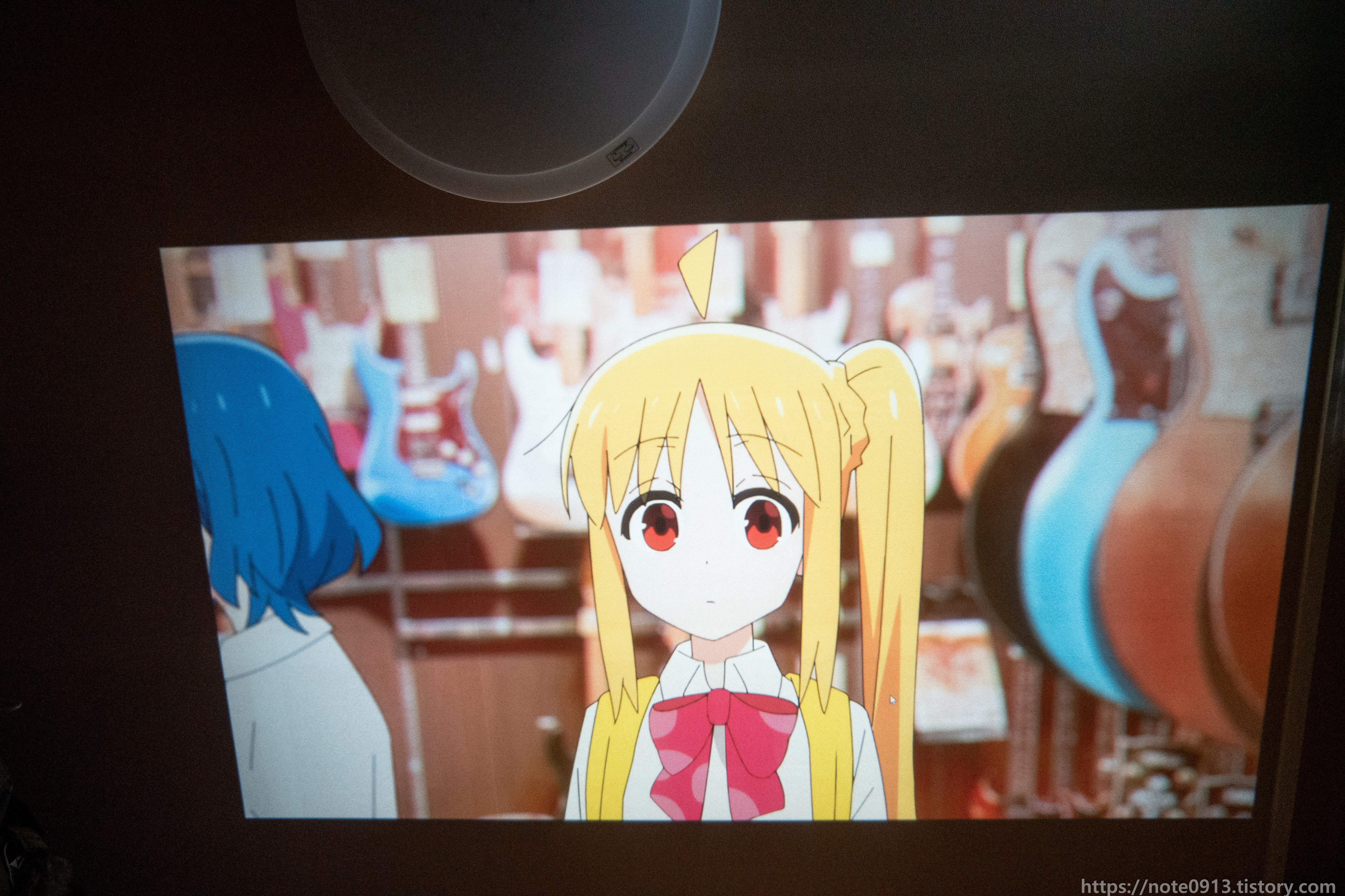 HY320의 진가는 바로 천장에 쏴서 보는거죠. 벽에는 벽지에 무늬가 있어서 보기 불편해서 무늬가 없는 천장에 쏴보았습니다.