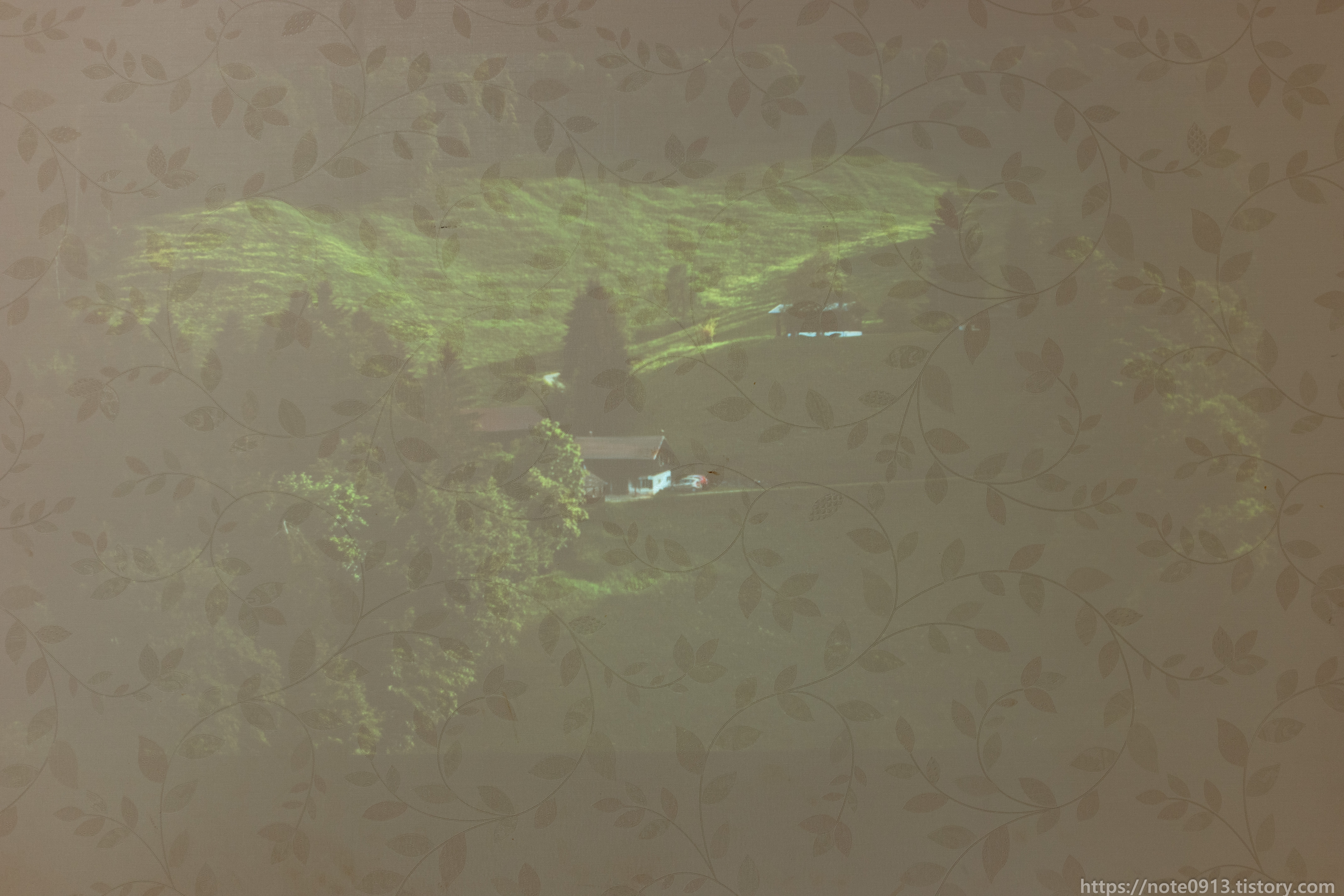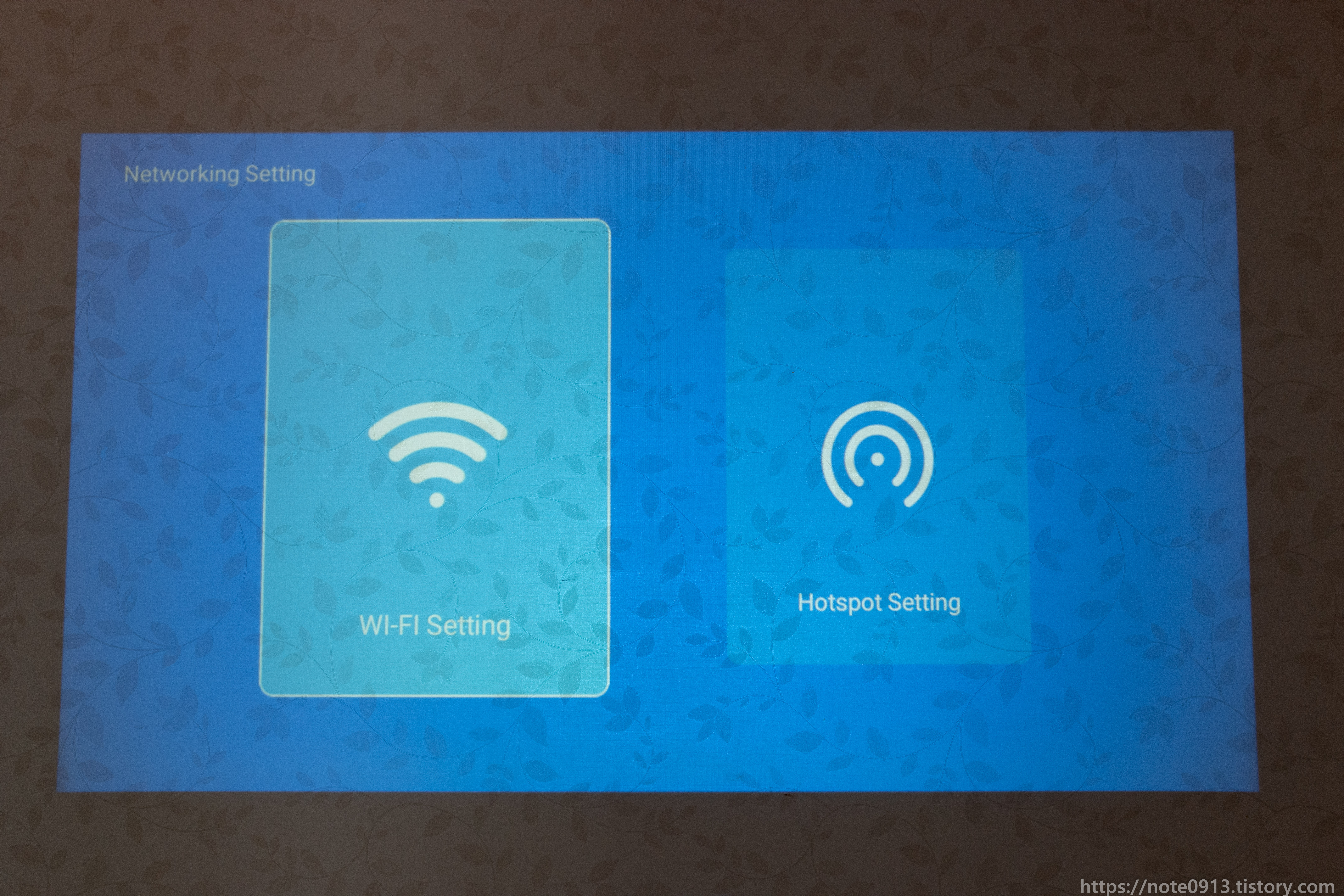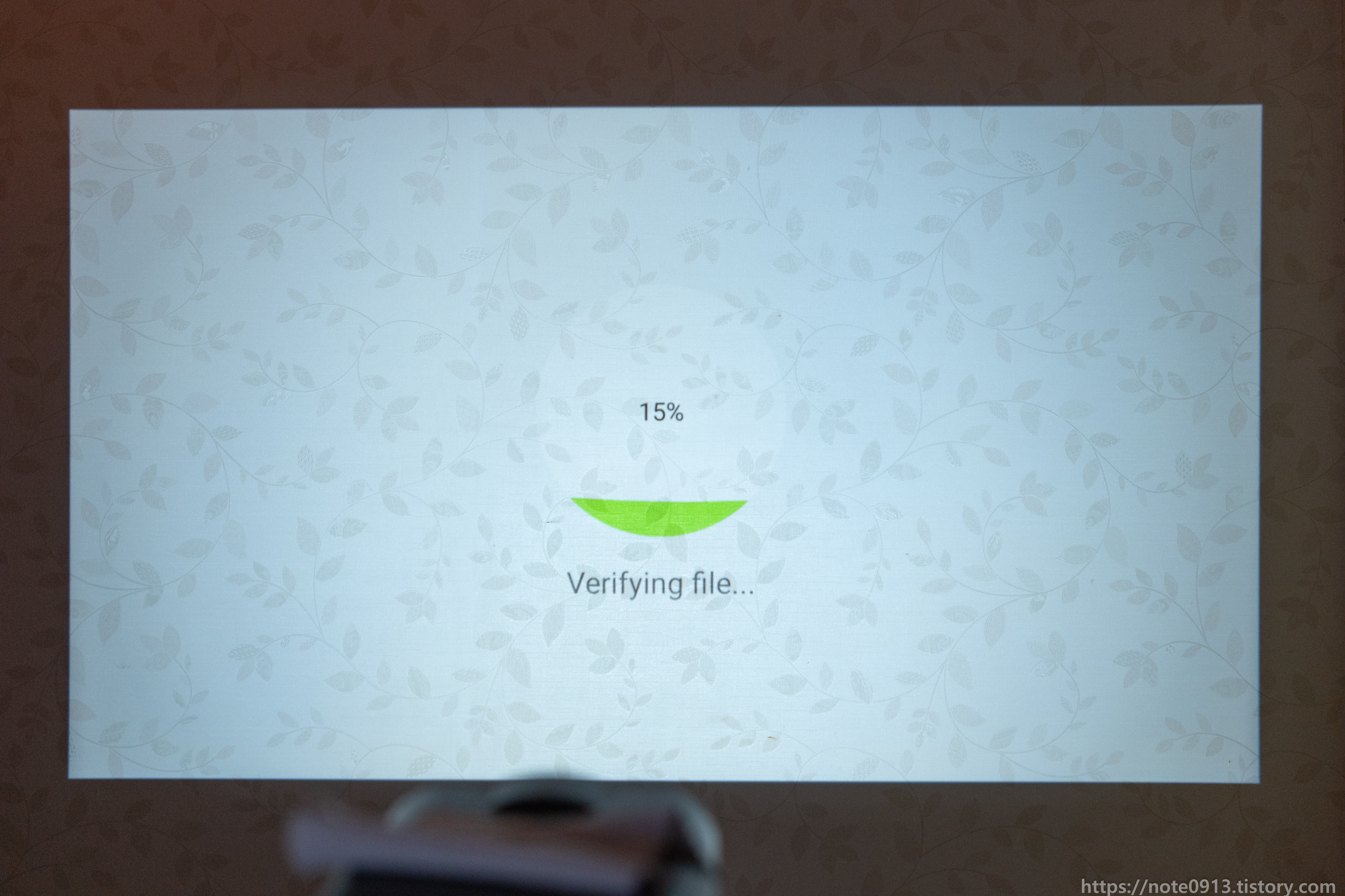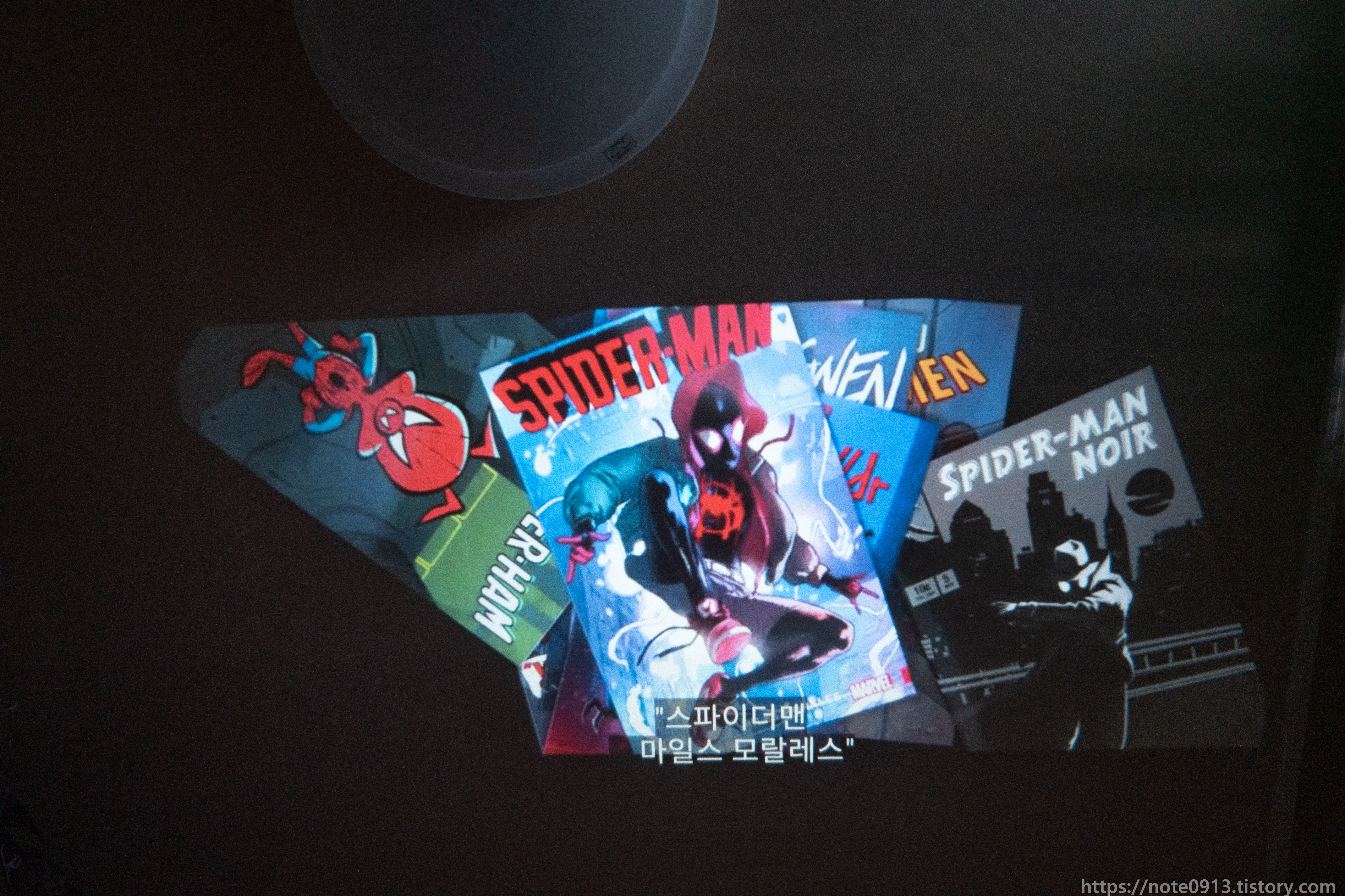 HY320의 진가는 바로 천장에 쏴서 보는거죠. 벽에는 벽지에 무늬가 있어서 보기 불편해서 무늬가 없는 천장에 쏴보았습니다.