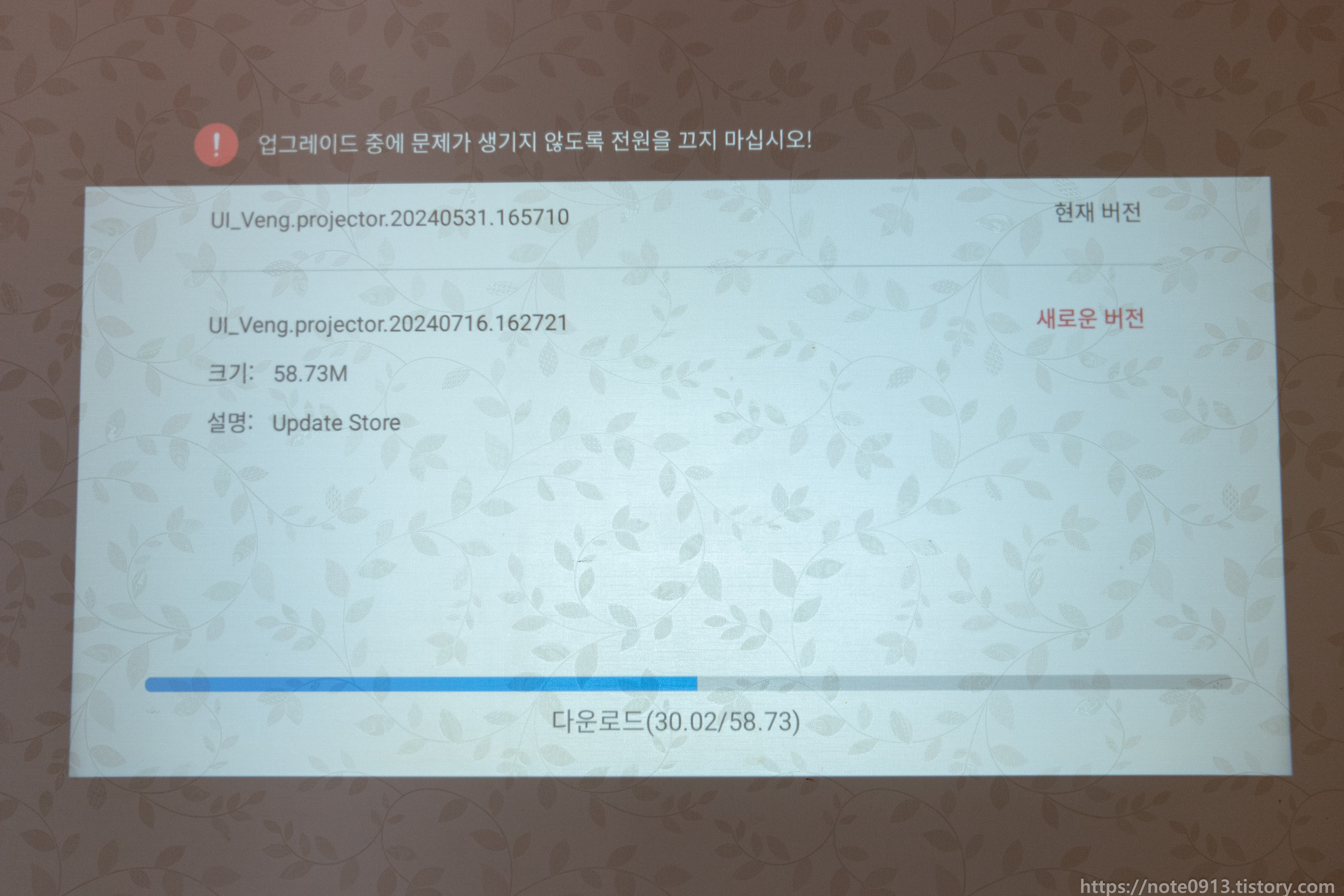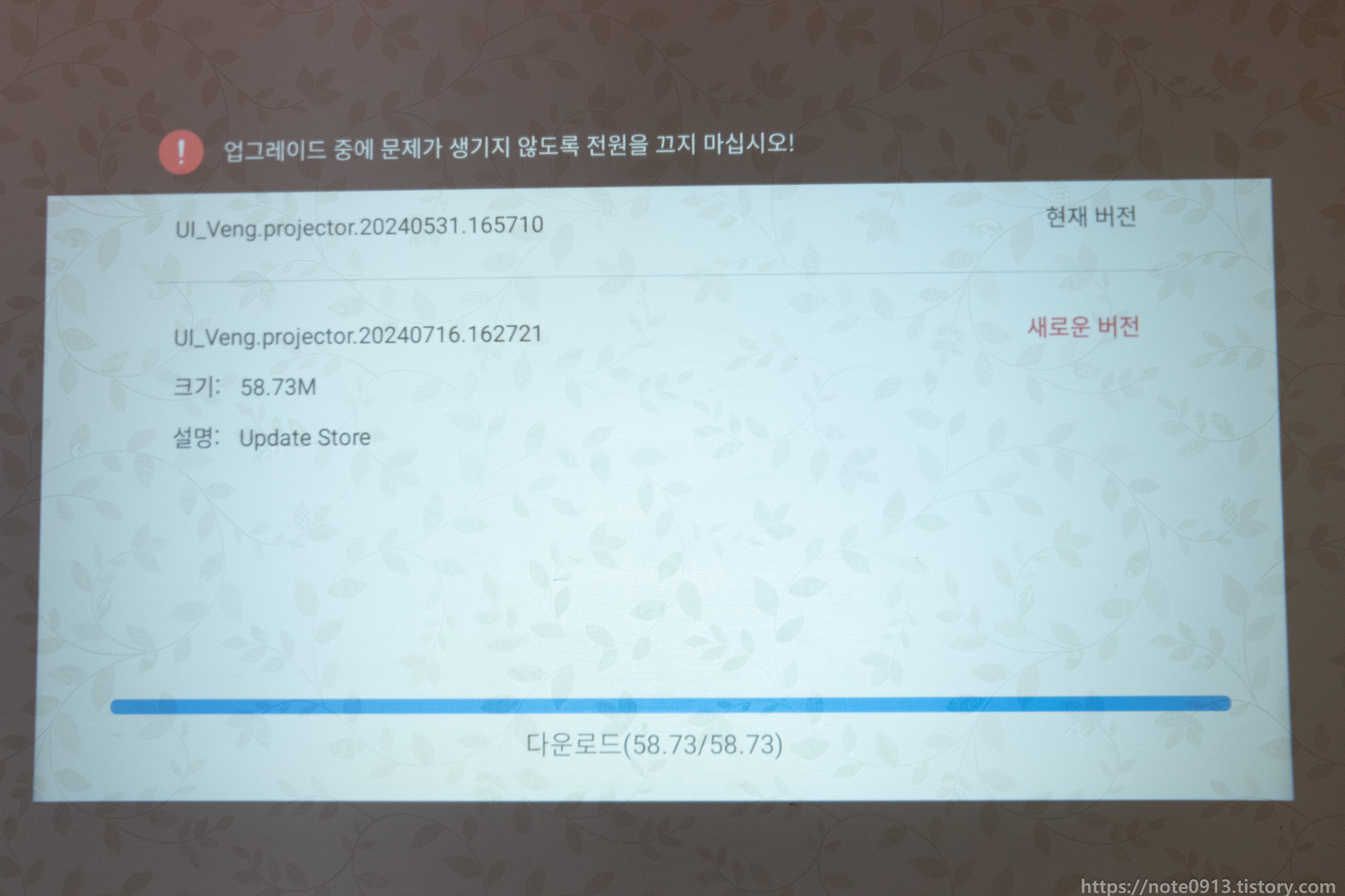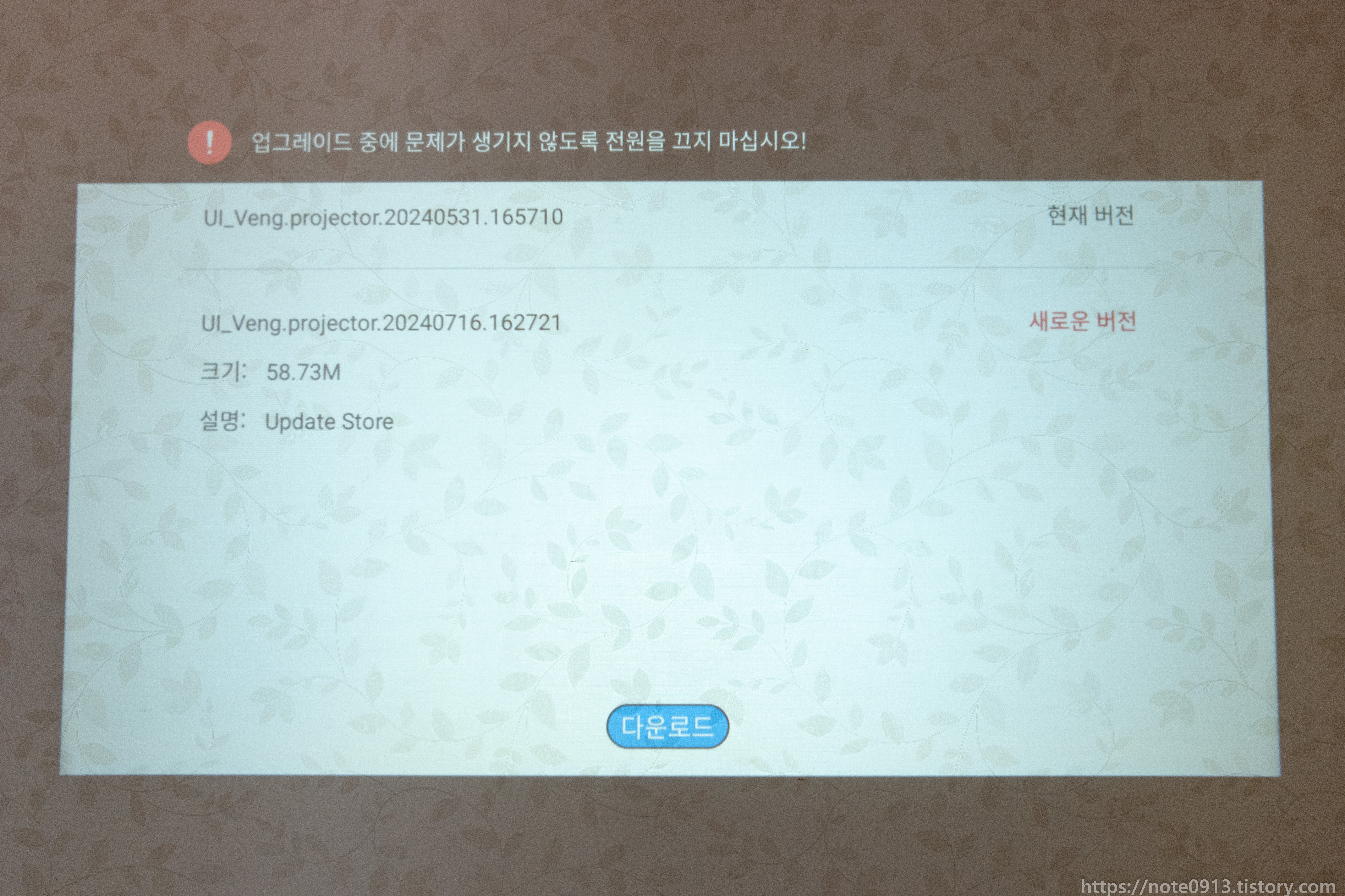 다운로드를 하면 펌웨어를 다운로드 받는데, 펌웨어를 다받고도 계속기다려도 화면에 다운로드 중이라고 뜨길래 아직 멀었나 생각했었는데, 그냥 다운 다받았으면 뒤로가기 누르고 다시들어가면 됩니다.