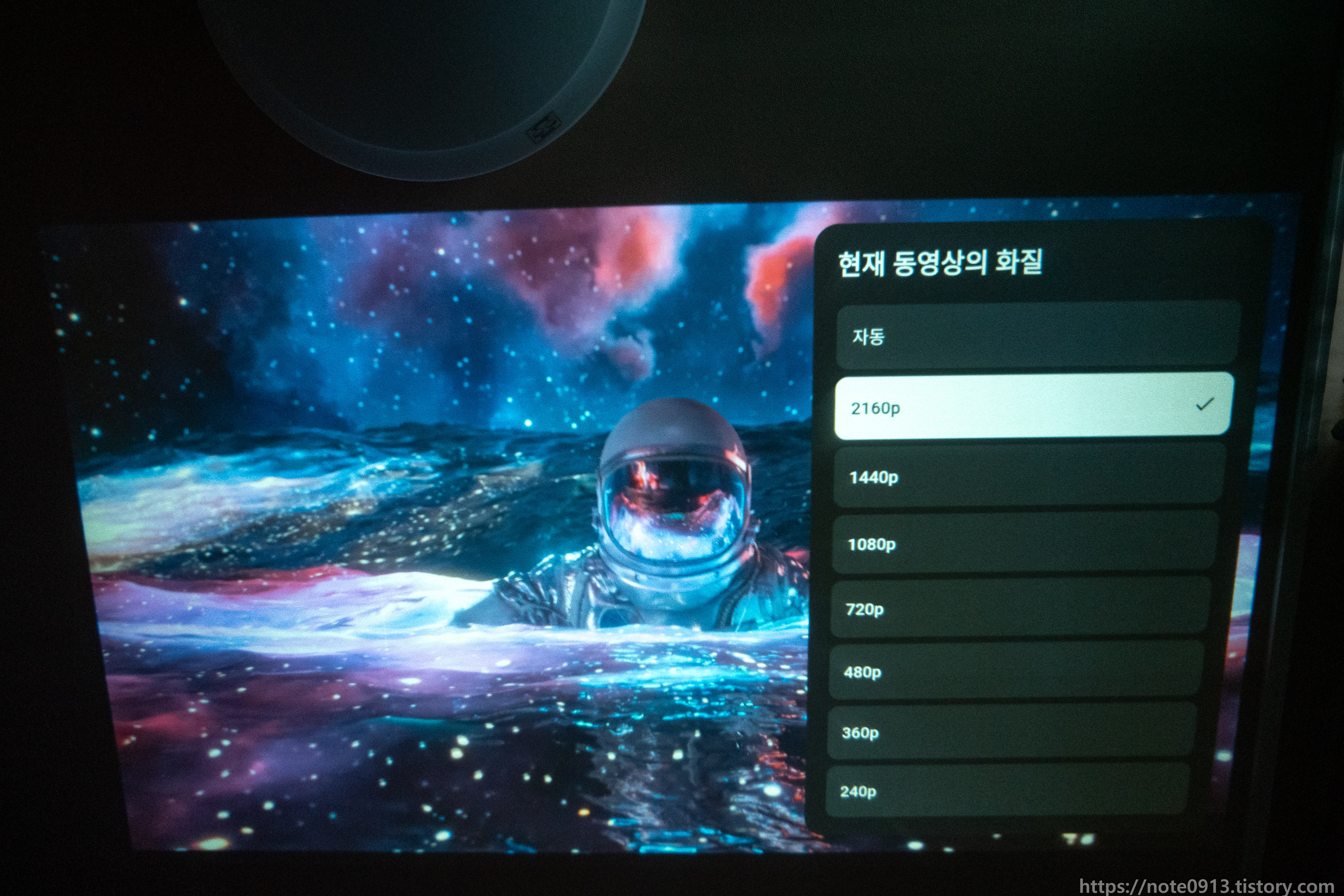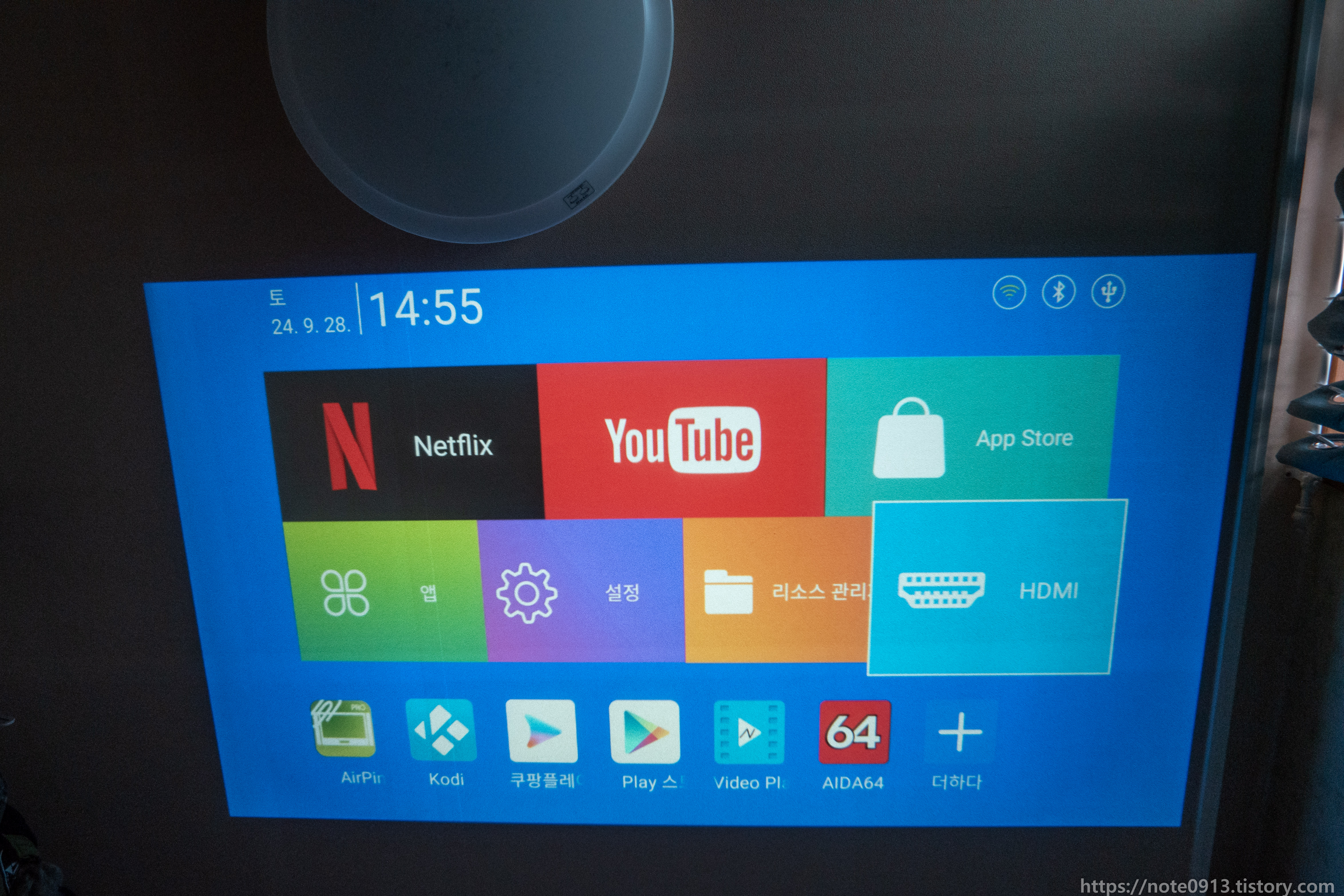 이번에는 HDMI 입력으로 영상을 재생해 보았습니다. 싱크테스트를 해보았는데 오디오가 비디오보다 0.25초 정도 빠르게 나옵니다. 아무래도 패스쓰루 방식으로 출력하는게 아니라서 안드로이드 OS 위에서 처리된 후 송출되는거라 지연이 좀 있는듯 합니다.
