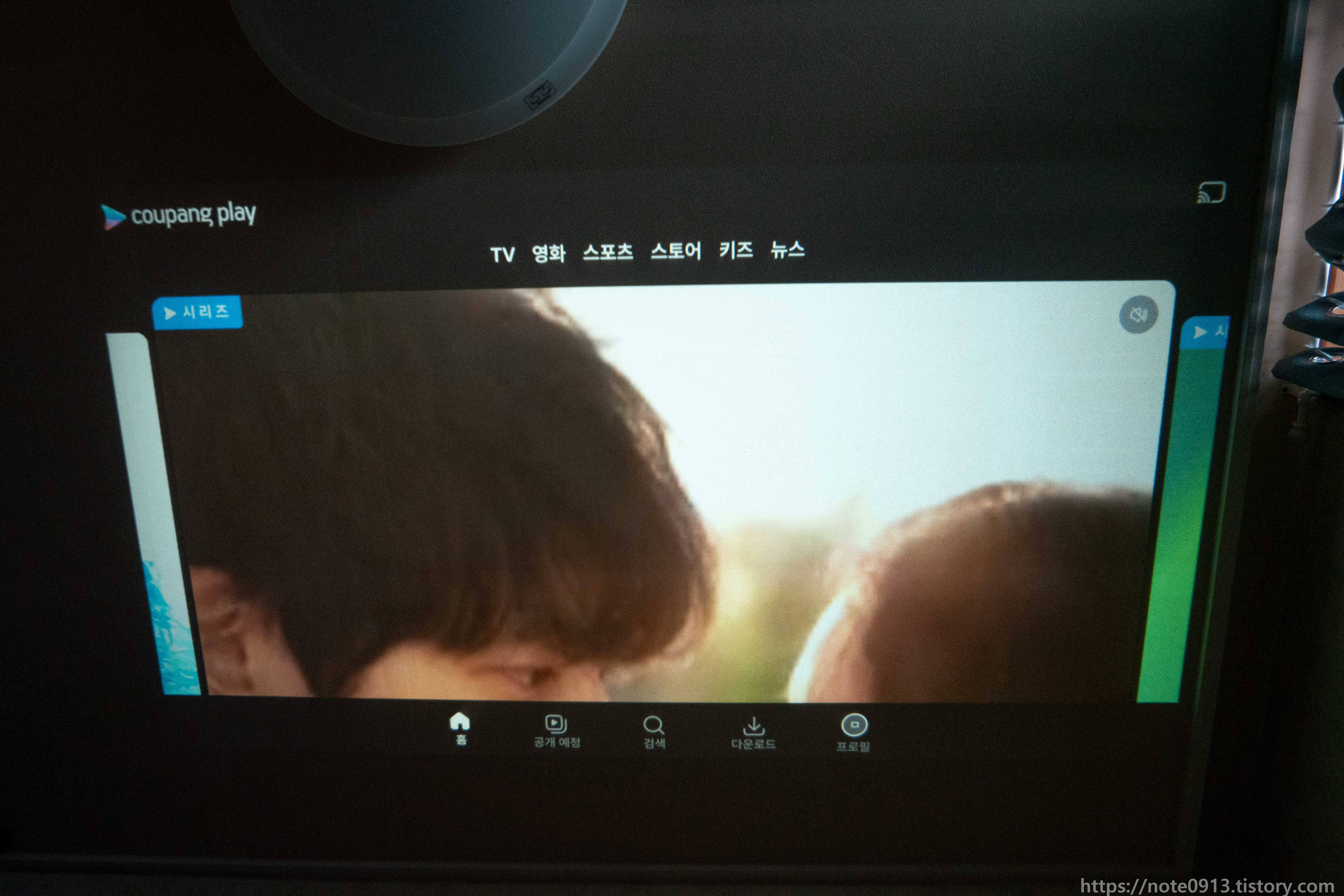 쿠팡플레이를 실행해 봤는데 화면이 티비용이 아니라 스마트폰 UI로 나옵니다. 당연히 리모컨 조작으로 제어하기는 힘들고 리모컨의 마우스 모드를 쓰거나, 별도의 마우스를 연결해서 사용해야 합니다.