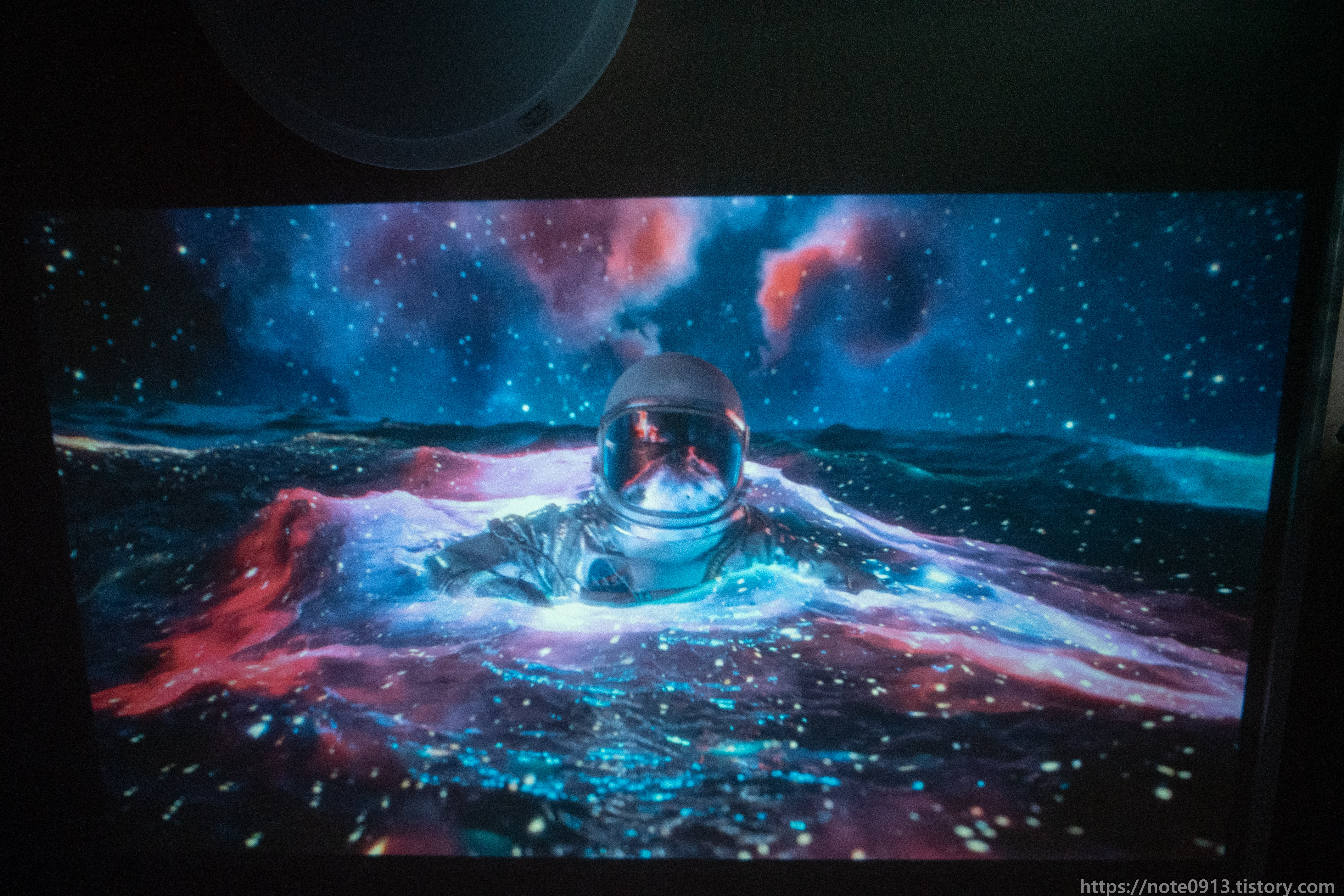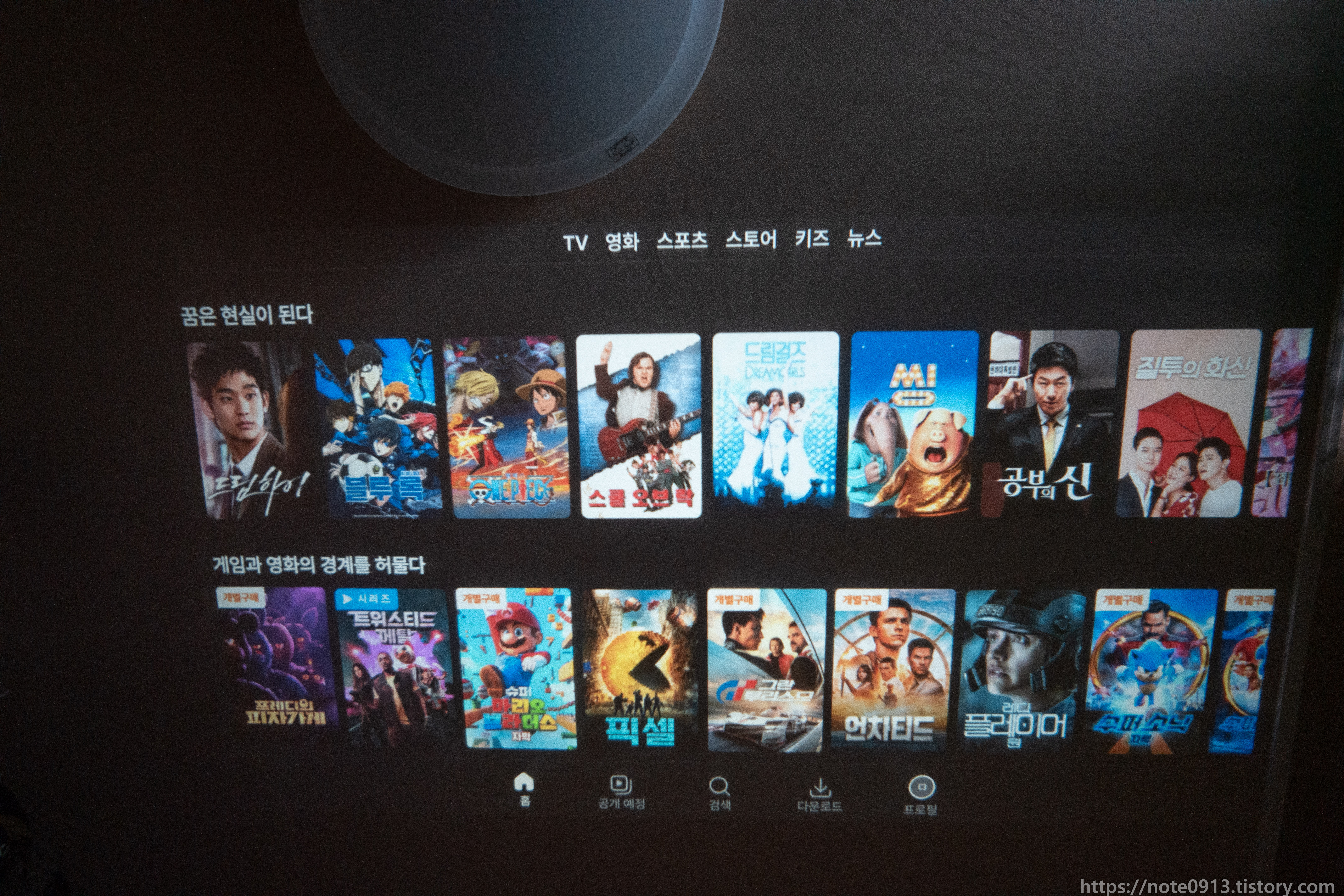 그래도 가격이 5만원대이고 벽에다 엄청난 크기의 화면으로 영상을 보는게 모니터나 TV로 보는 것과는 완전 다른 느낌에다가 영화관에 온 것같은 느낌이라서 저는 만족스럽니다.