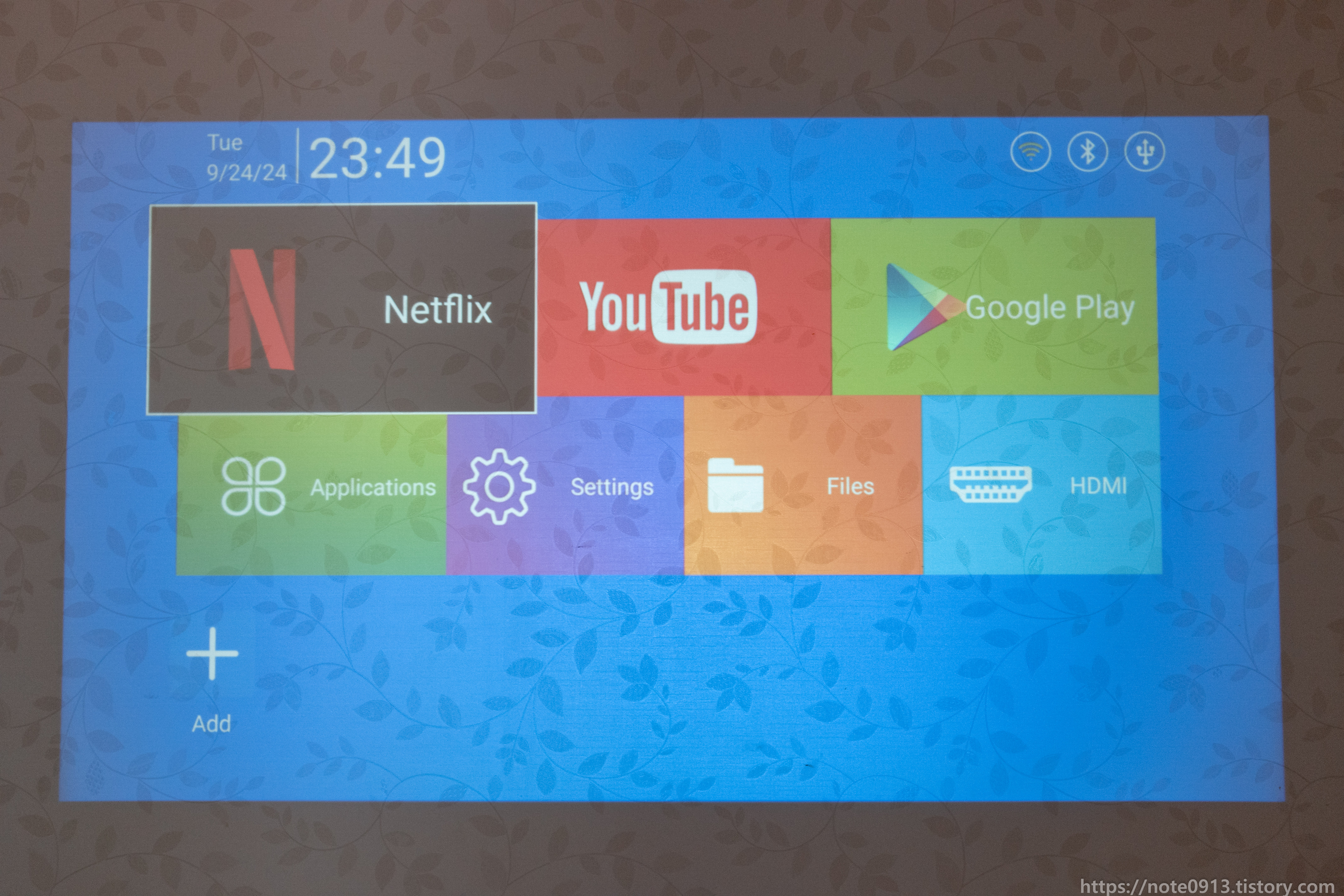 안드로이드 TV OS가 내장되어 있어서 전원선만 꽂으면 바로 사용할 수 있다는 점이 좋습니다. 특히 유튜브 앱은 완벽하게 호환이 되서 천장에 쏴서 누워서 유튜브를 보는게 정말 좋은 것 같습니다. NAS를 가지고 있다면 NOVA 플레이어나 KODI 앱으로 NAS에 저장된 영상을 볼 수있는게 장점입니다. 다른 앱들도 사용할 수 있으나 OTT 앱의 경우 와이드바인 레벨이 낮아서 그런지 해상도가 480까지 지원하는게 단점입니다.