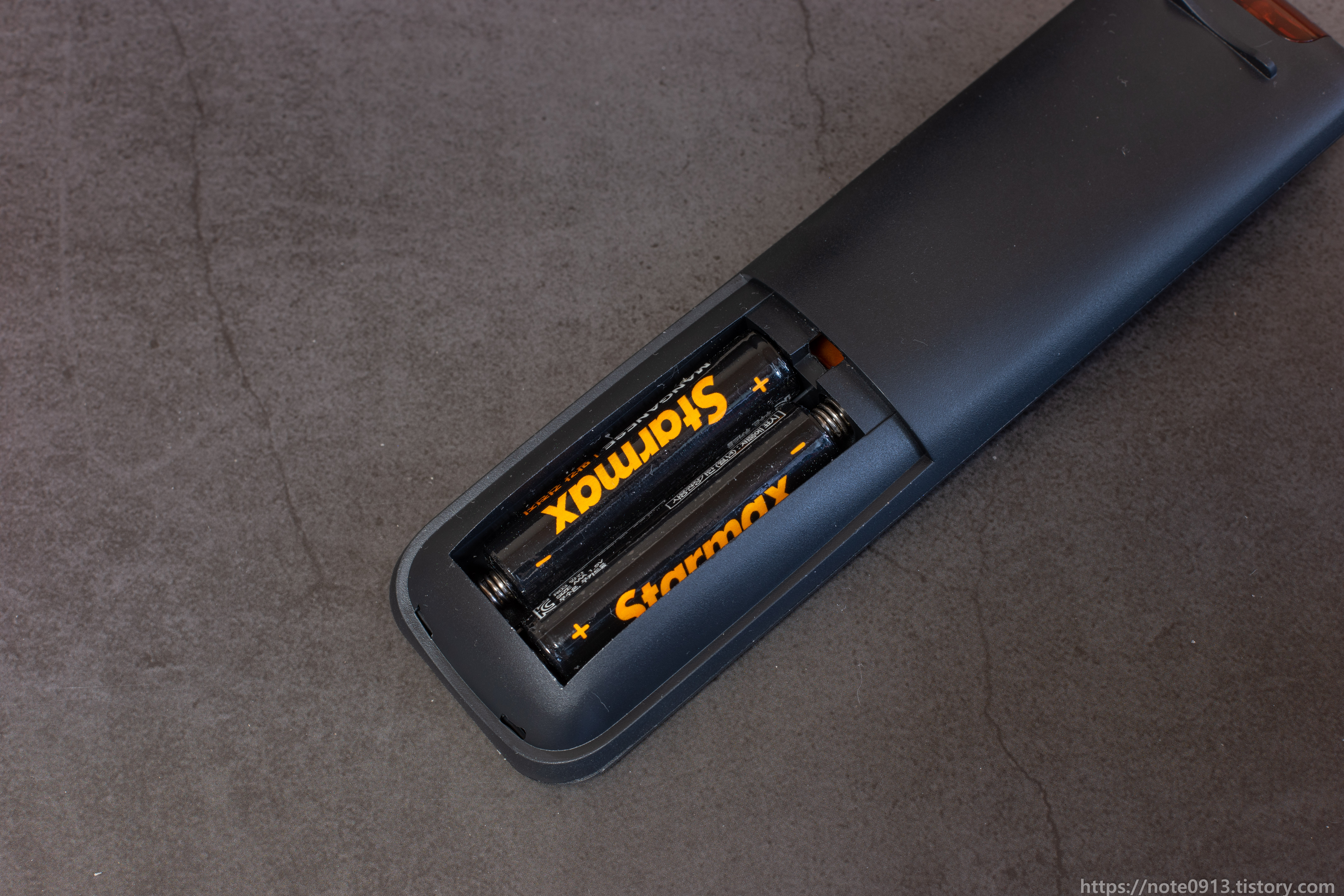 리모컨 뒷면입니다. AAA 건전지 2개를 사용하고 IR 방식의 리모컨입니다.