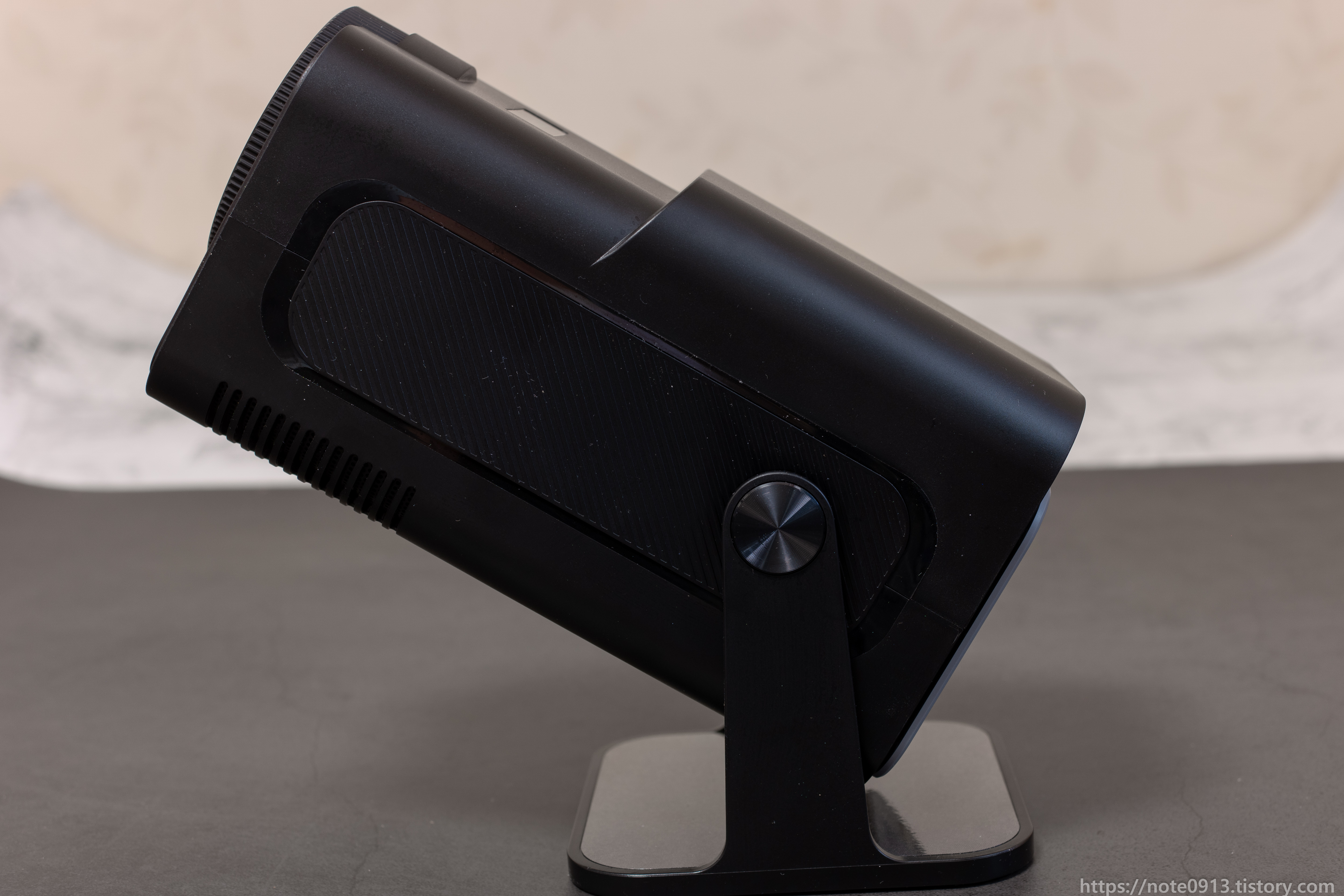 HY320의 가장 큰 장점 중 하나인 자유로운 각도조절이 가능하다는 점입니다. 위 사진처럼 10도씩 각도를 쉽게 조절할 수도 있고 수직으로 세워서 천장에 쏠 수도 있습니다.