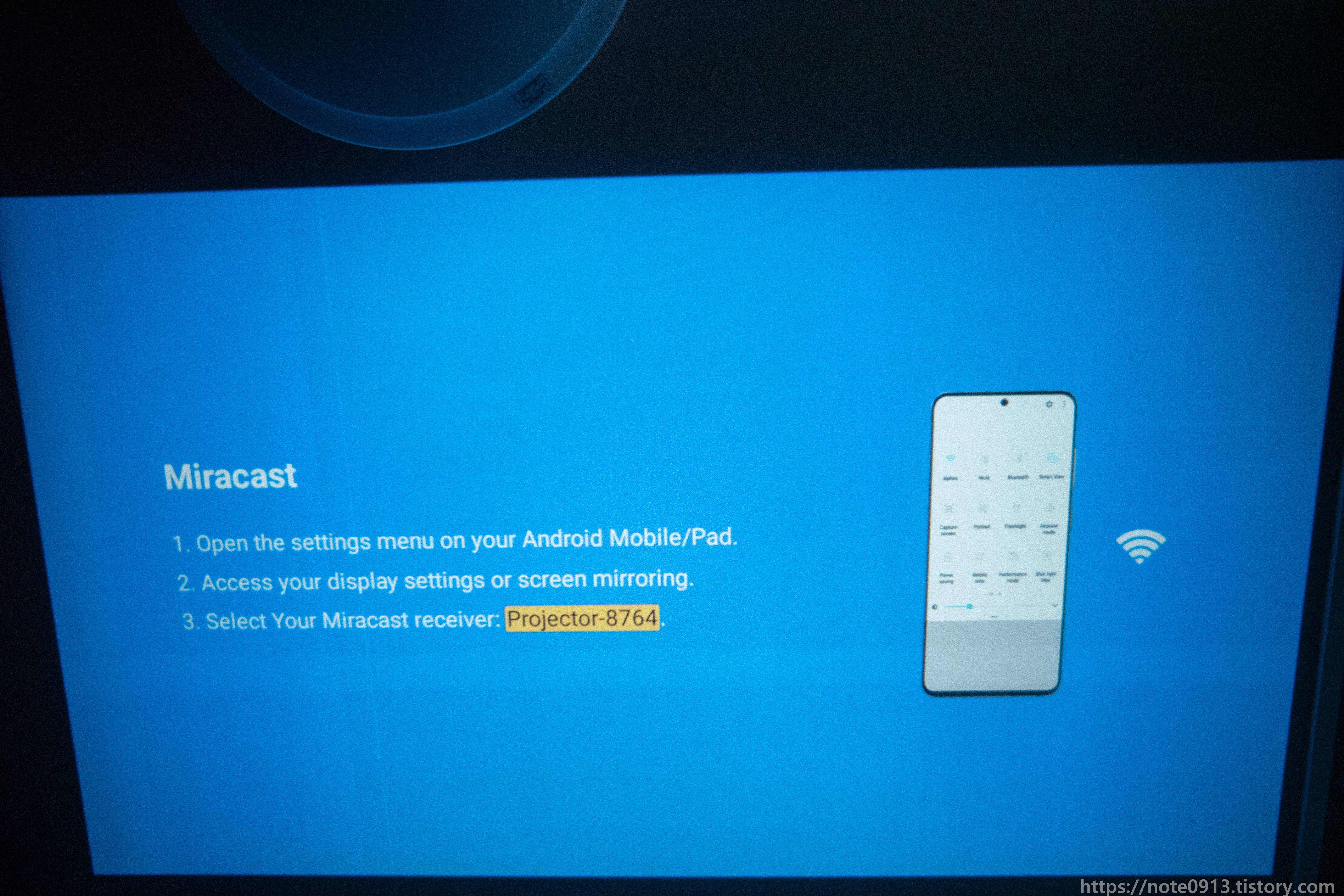 광원이 LED라서 그런지, 램프식 프로젝터와는 다르게 바로 최대 밝기로 나오니 이 점은 좋은 것 같습니다.