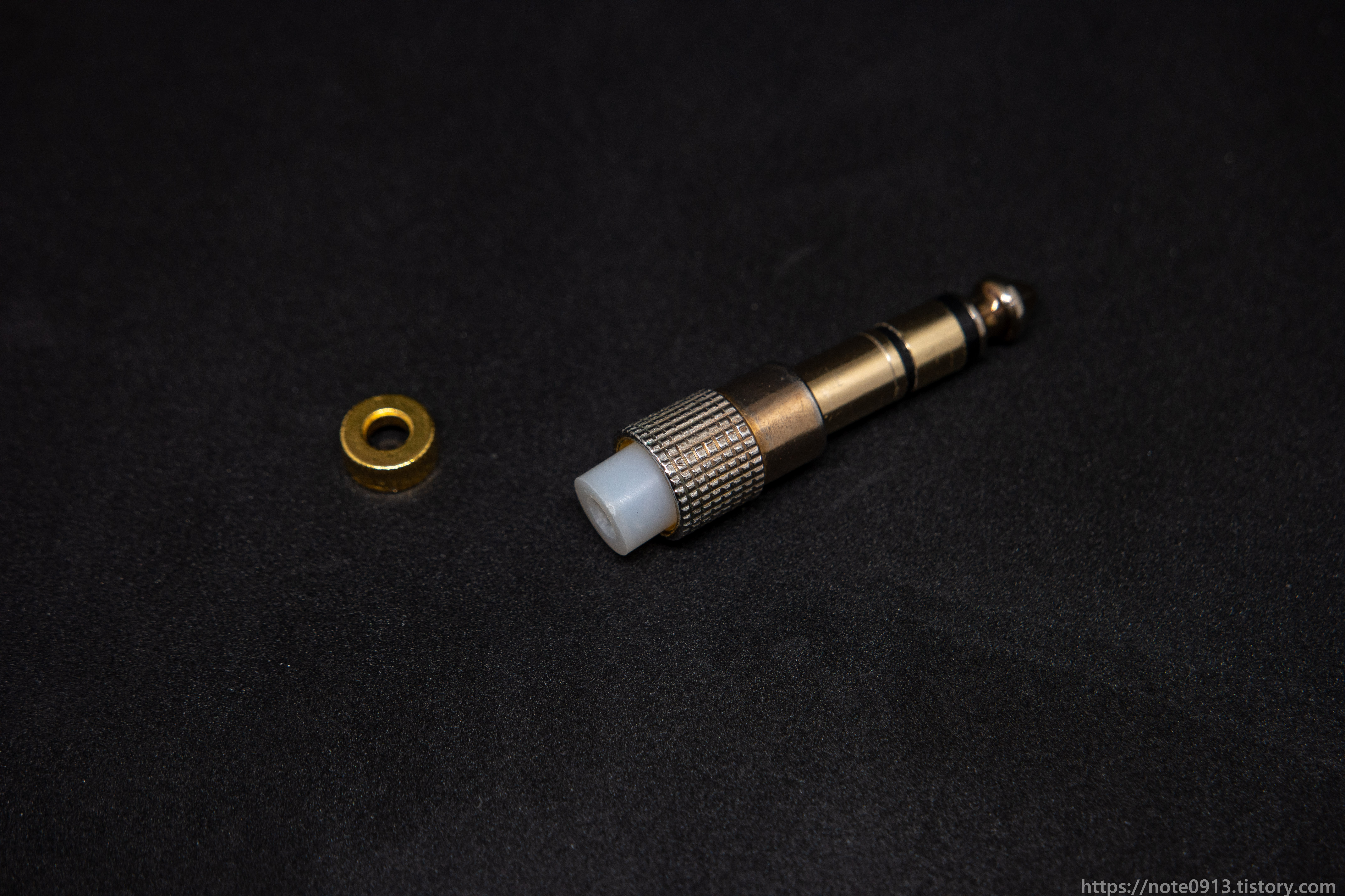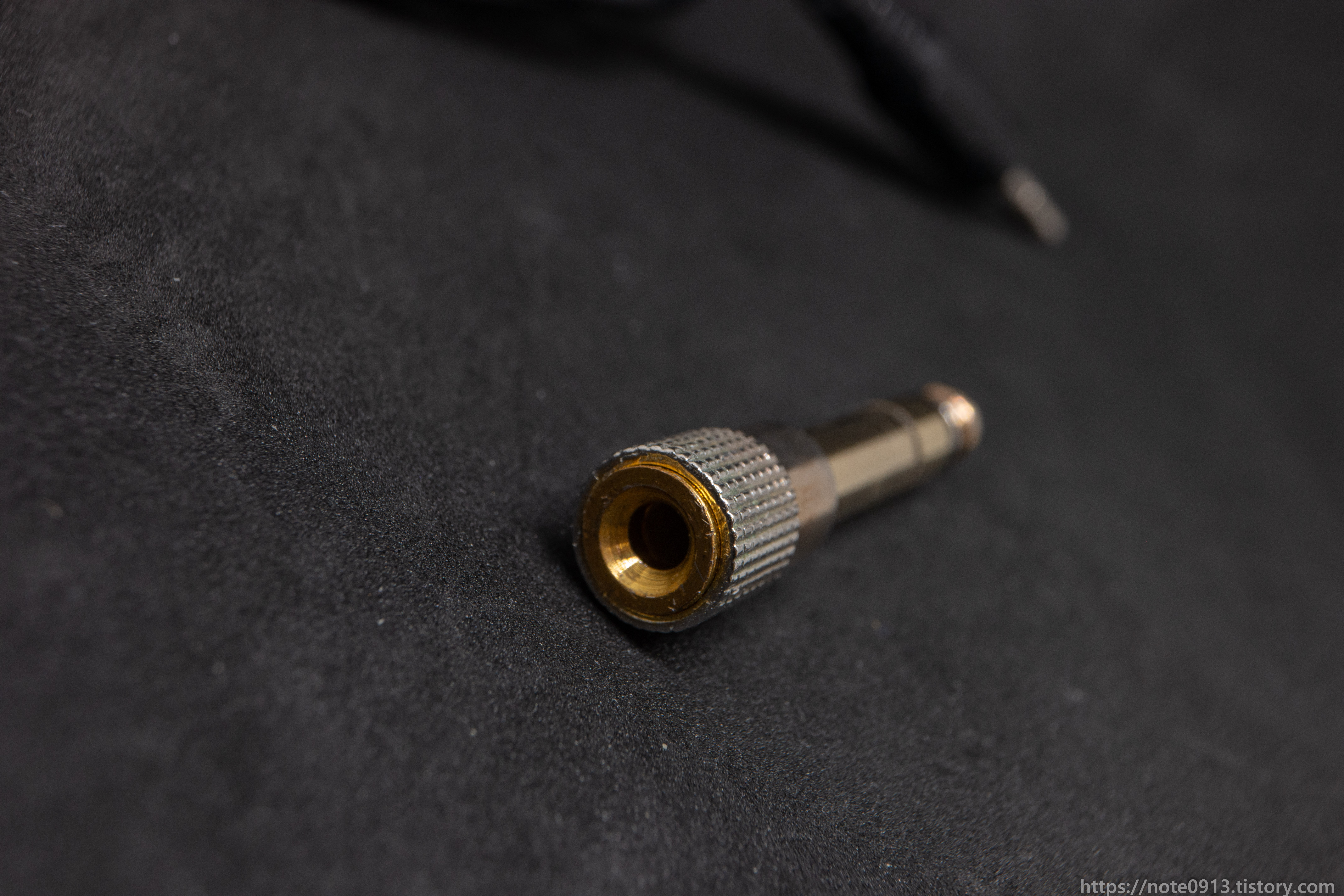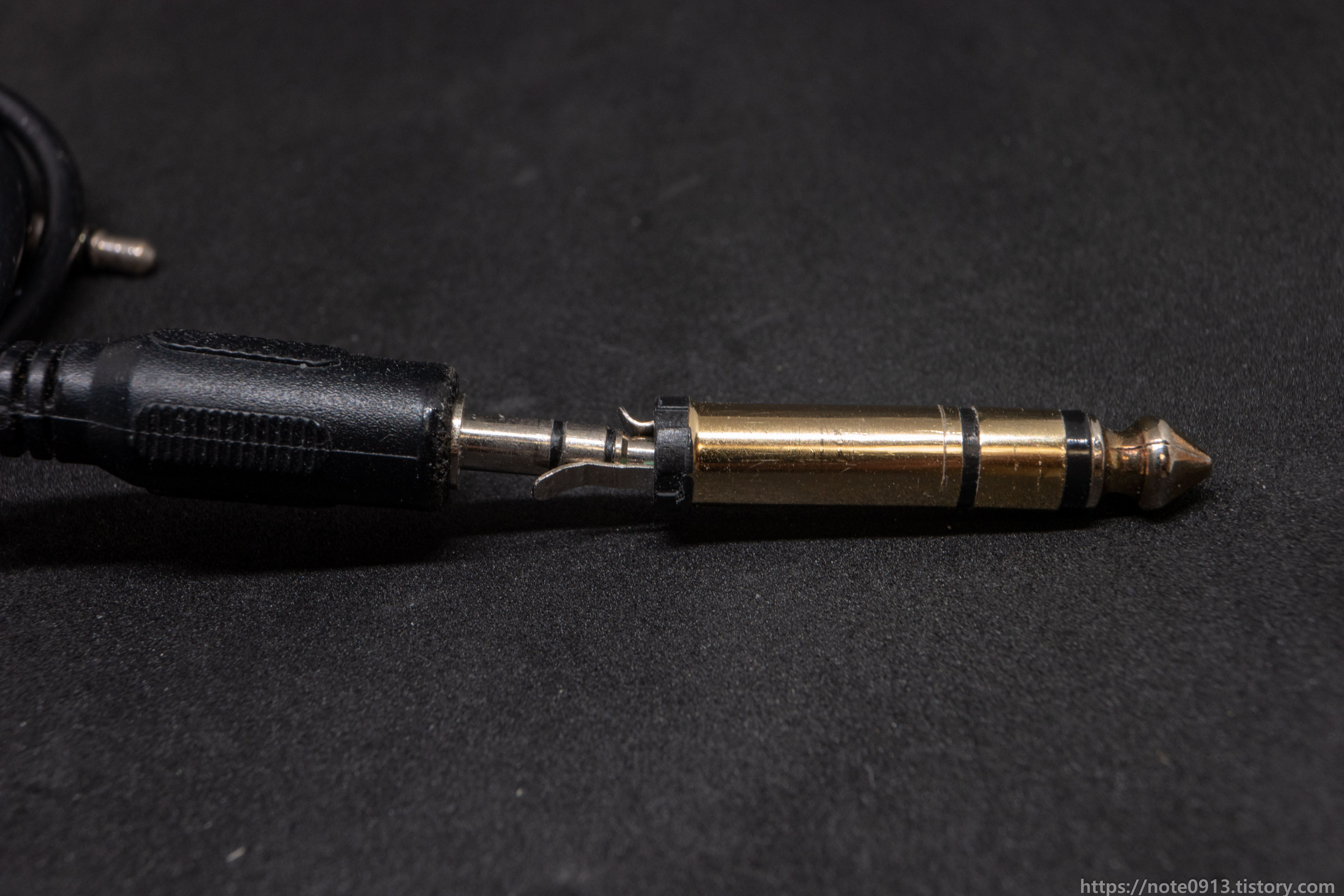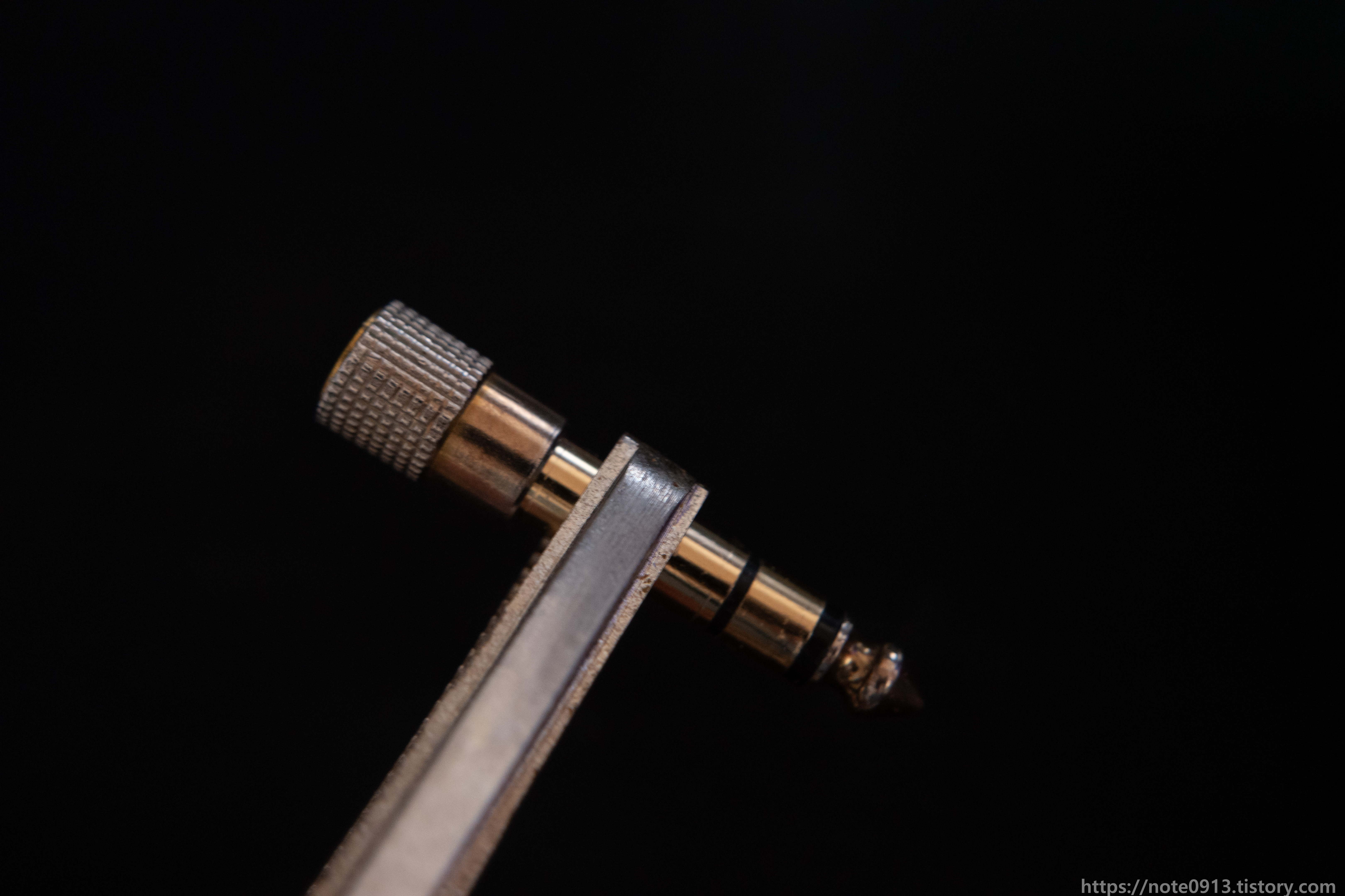 일명 총알잭이라고 불리는 어댑터입니다. 3.5mm 오디오 단자를 6.35mm 단자로 변환해주는 어댑터입니다. 인치로는 1/8"(3.5mm)를 1/4"(6.35mm)가 바꿔주게 됩니다.