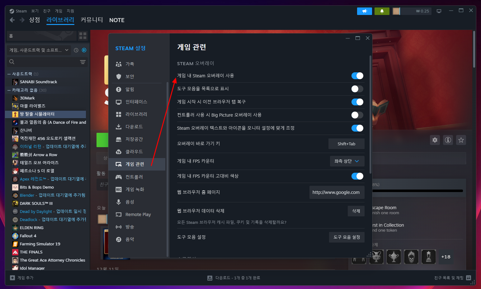 스팀 오버레이를 꺼보자! / 스팀 오버레이 비활성화