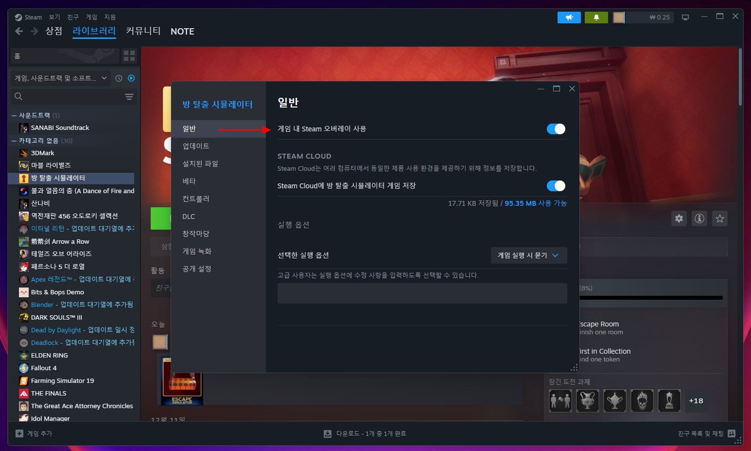 이렇게 하면 원하는 게임만 스팀 오버레이를 비활성화할 수 있습니다.