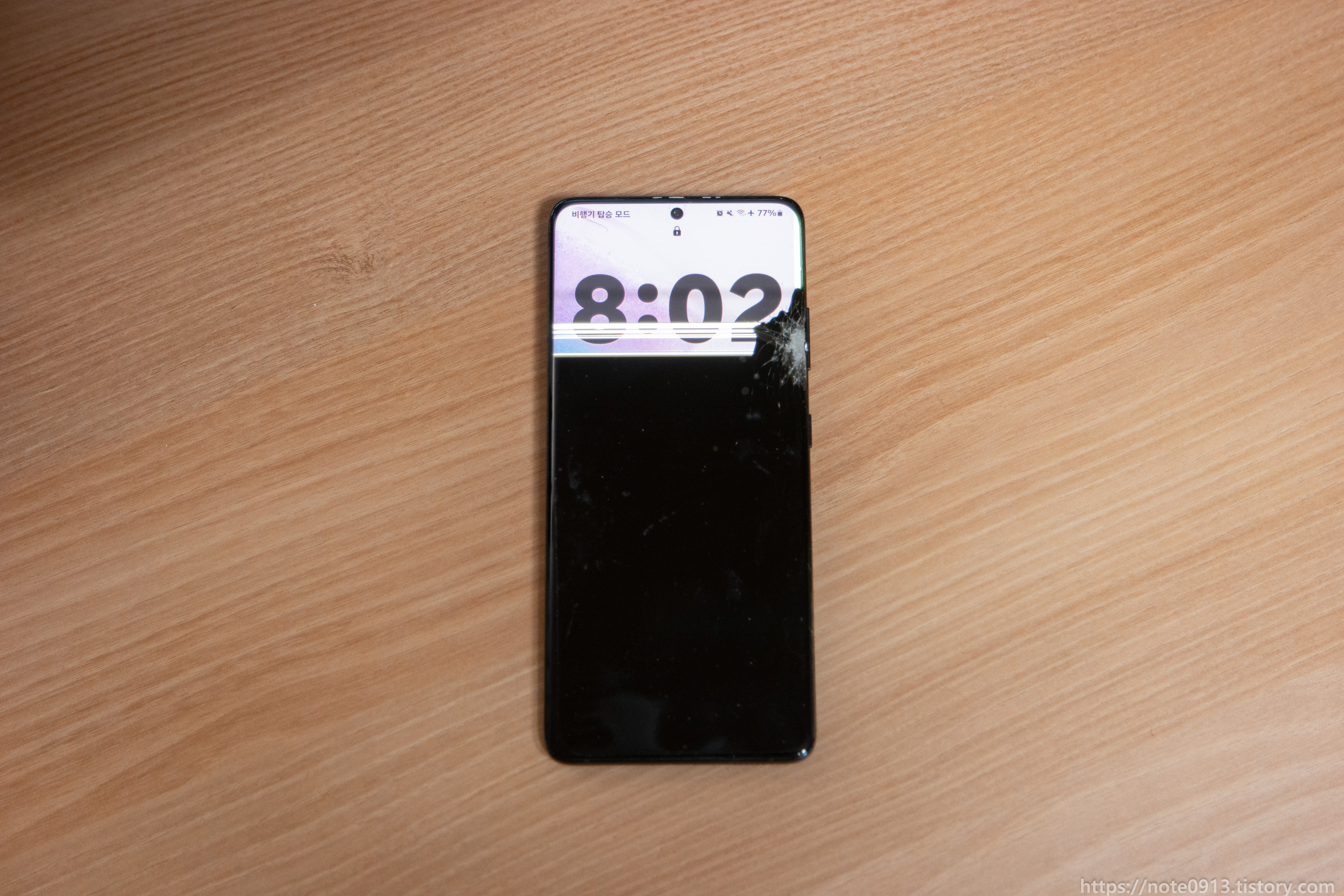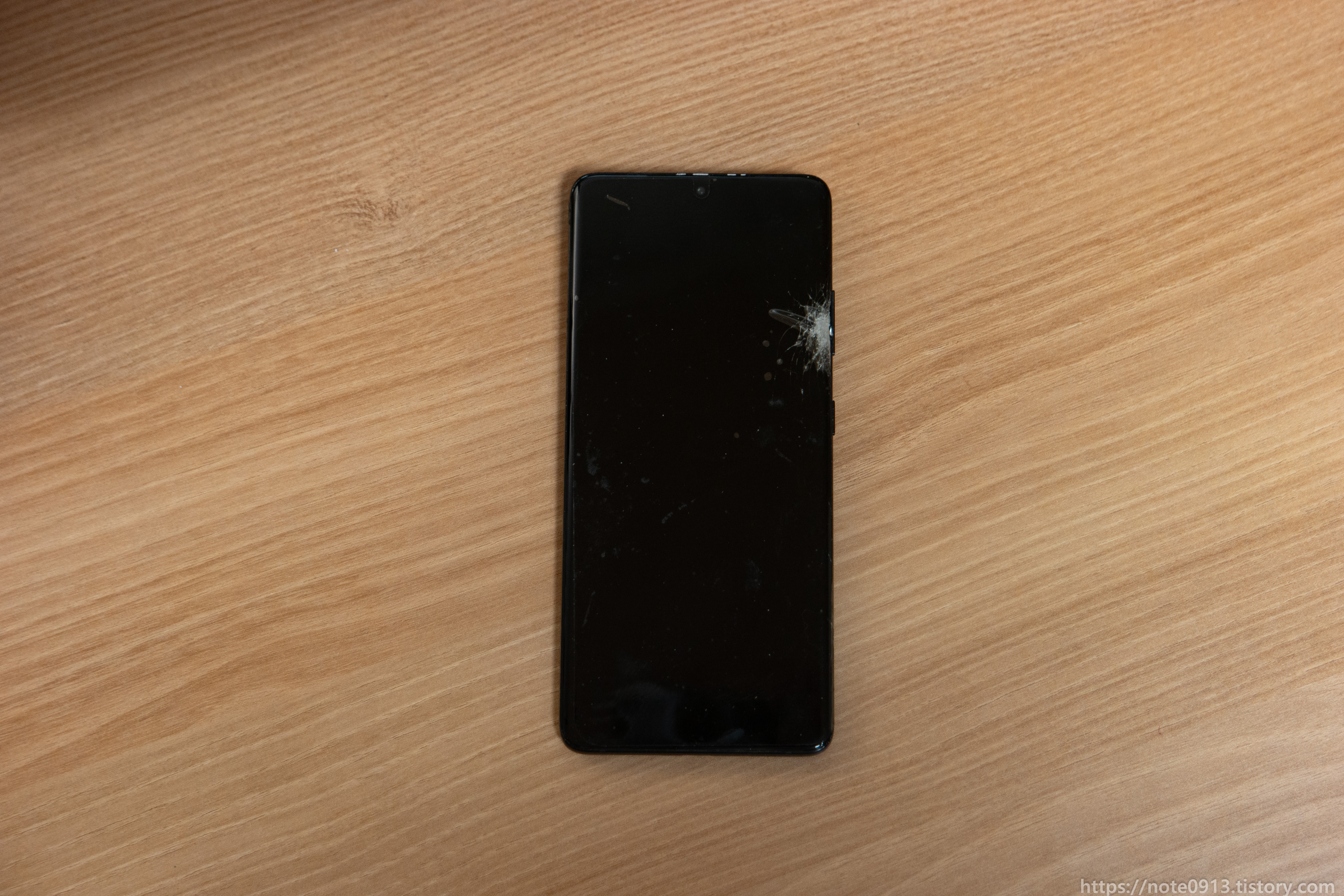 살펴보니 삼성 갤럭시 S21 울트라 스마트폰의 액정이 깨져버렸습니다.