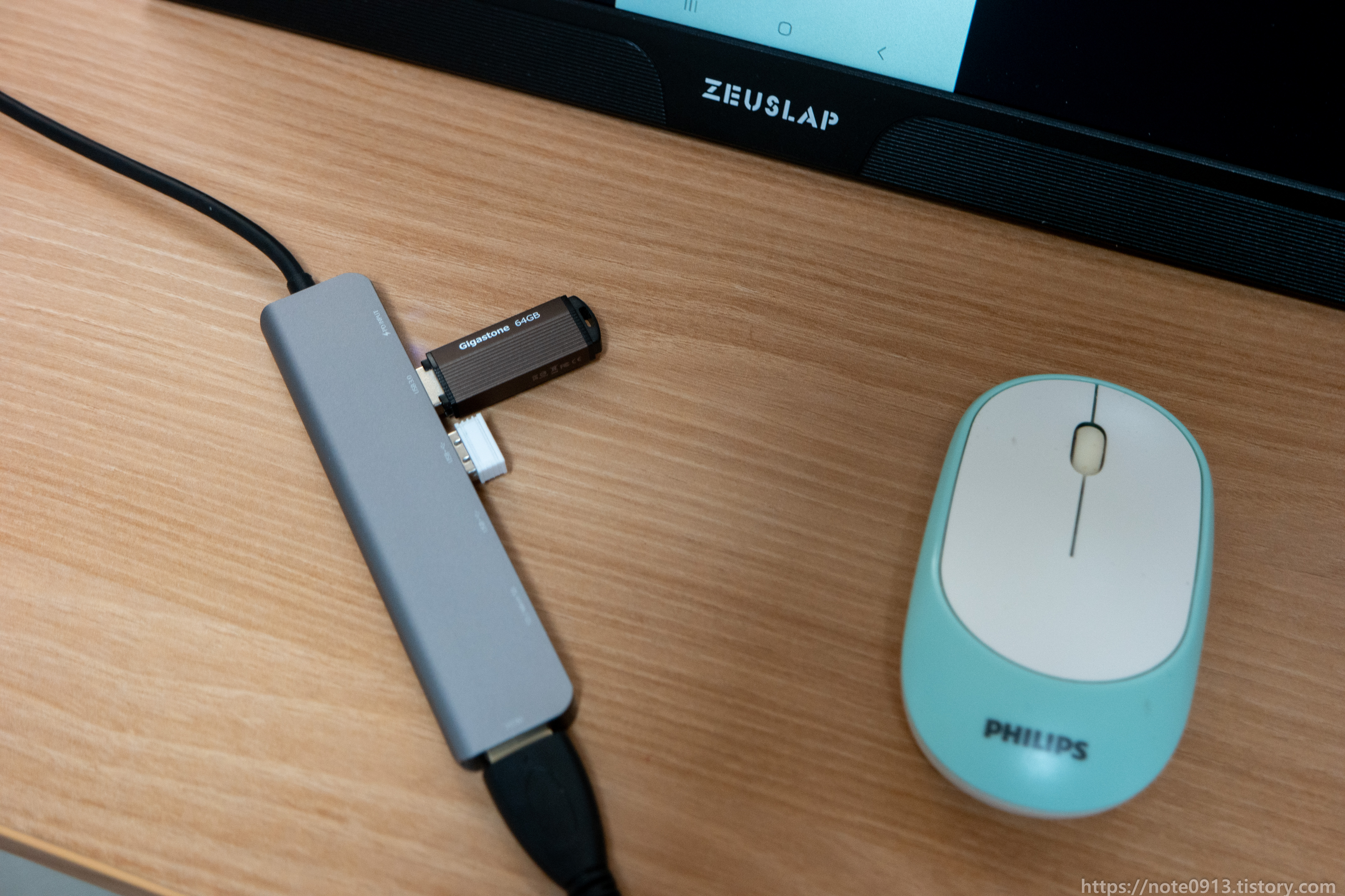 데이터 백업을 위해 USB 메모리와 마우스를 연결했습니다.