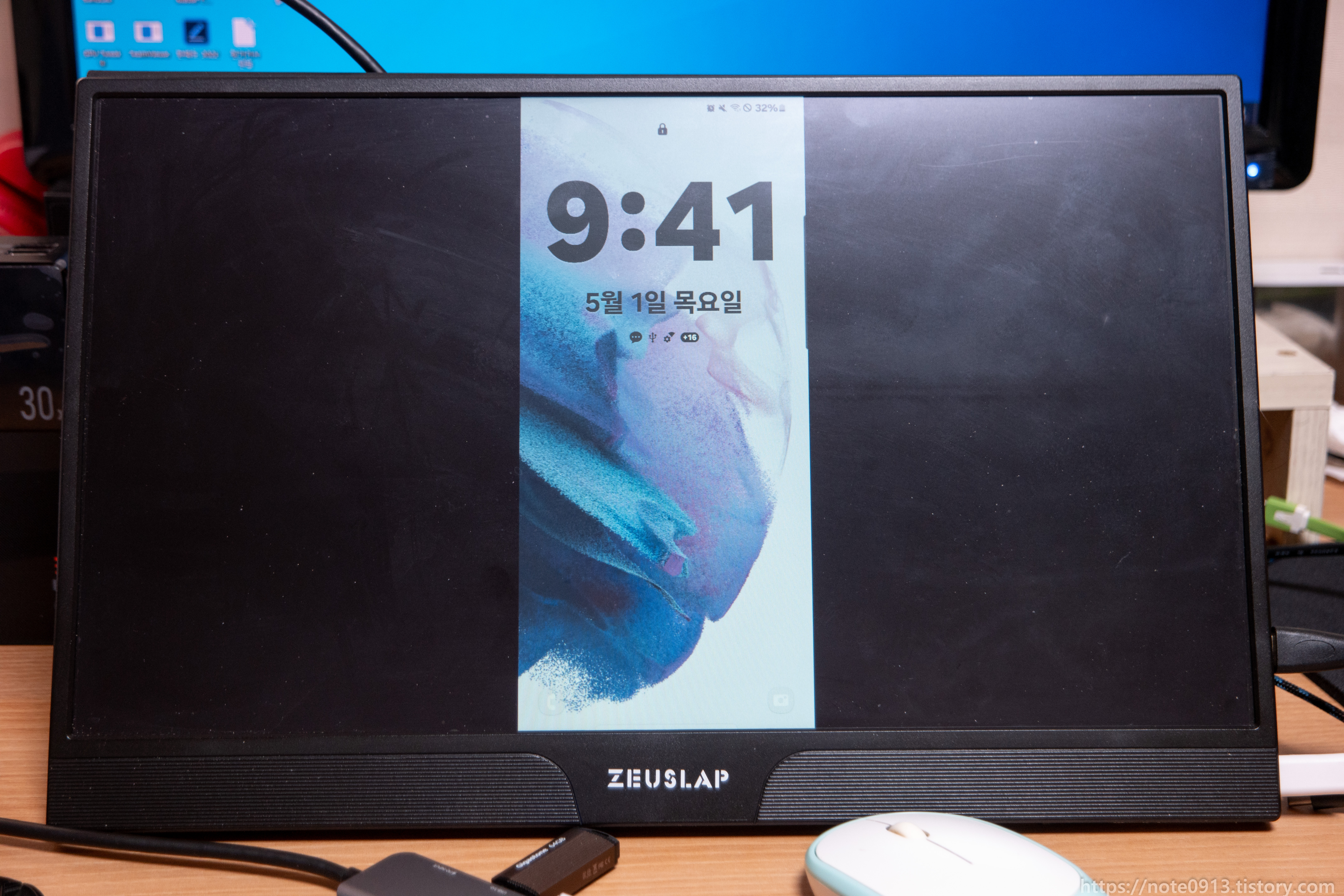 그래서 예전에 사둔 포터블 모니터를 꺼냈습니다.