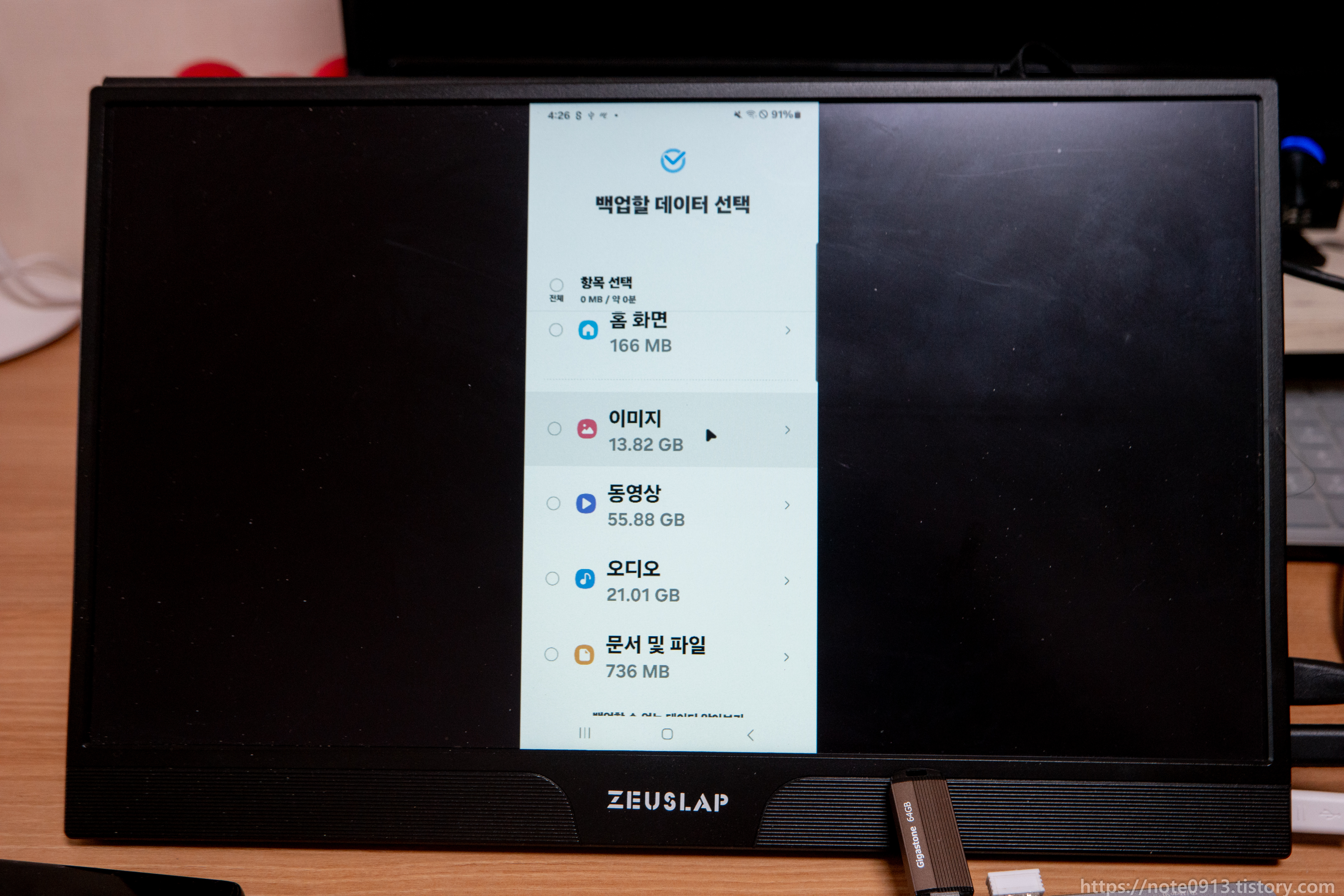 백업할 데이터를 직접 설정하면 연락처, 동영상, 오디오, 사진 등등 여러가지를 백업할 수 있습니다.