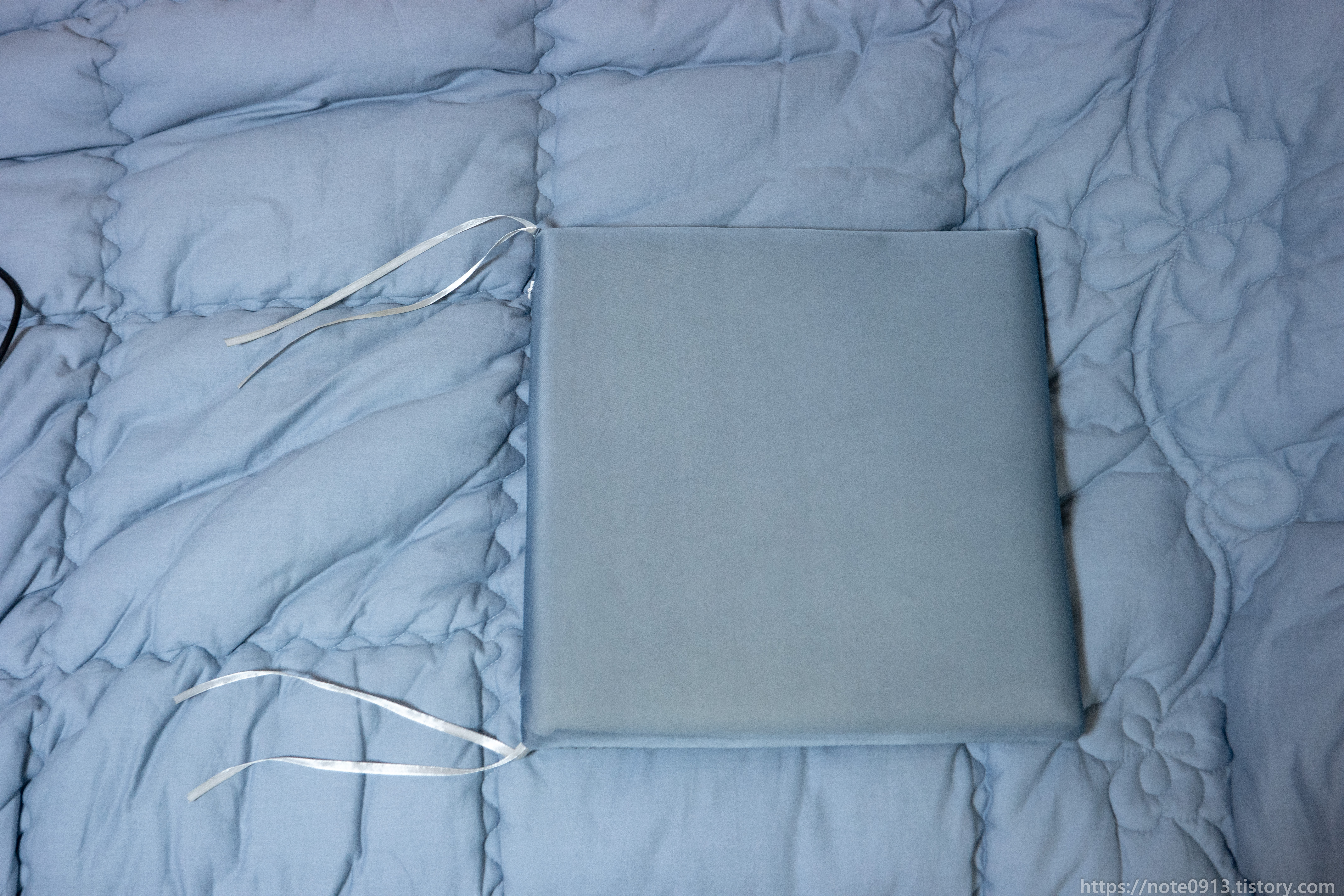 도착한 메모리폼 방석입니다. 의자에서 떨어지지말라고 의자에 묶을 수 있는 끈도 있습니다.