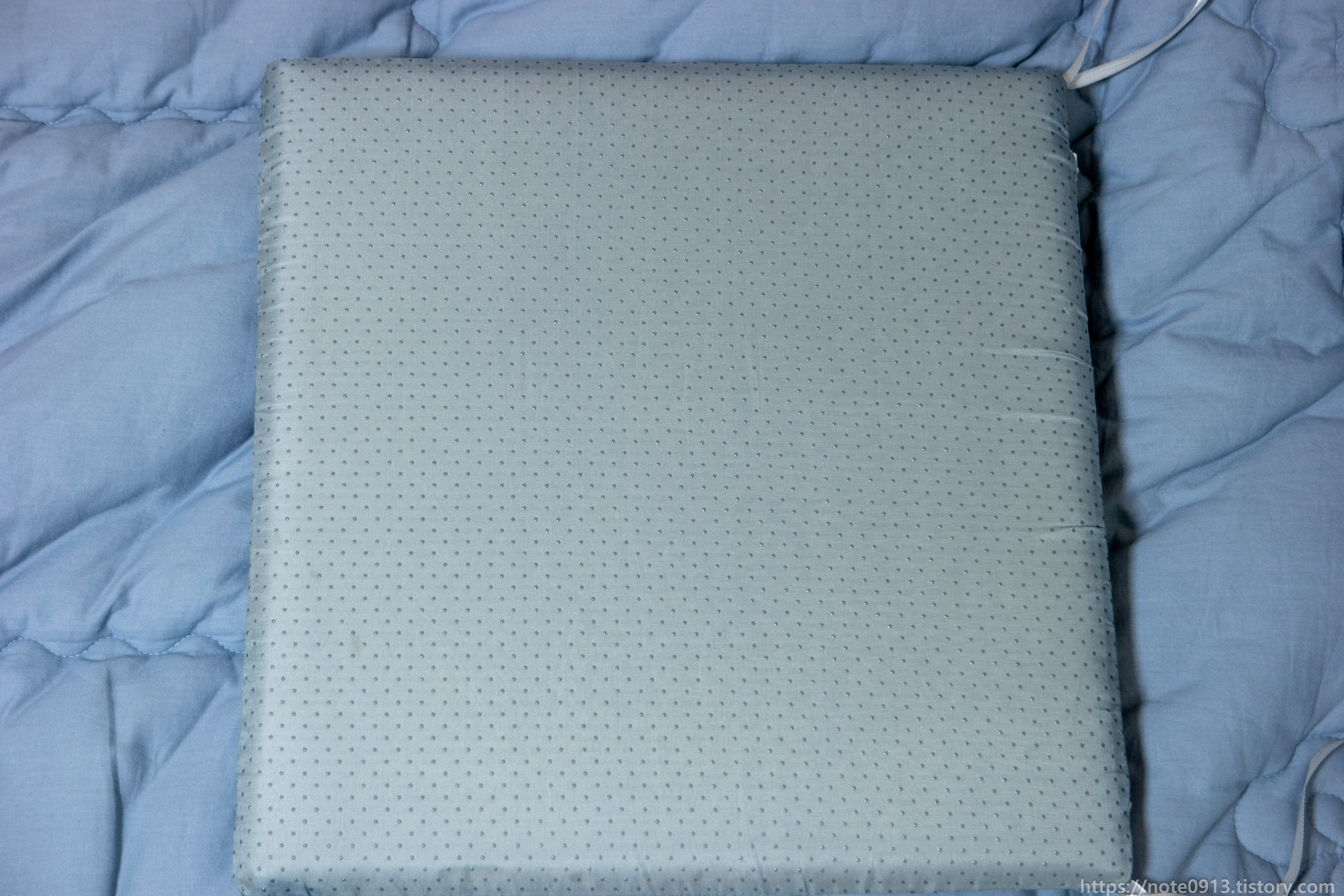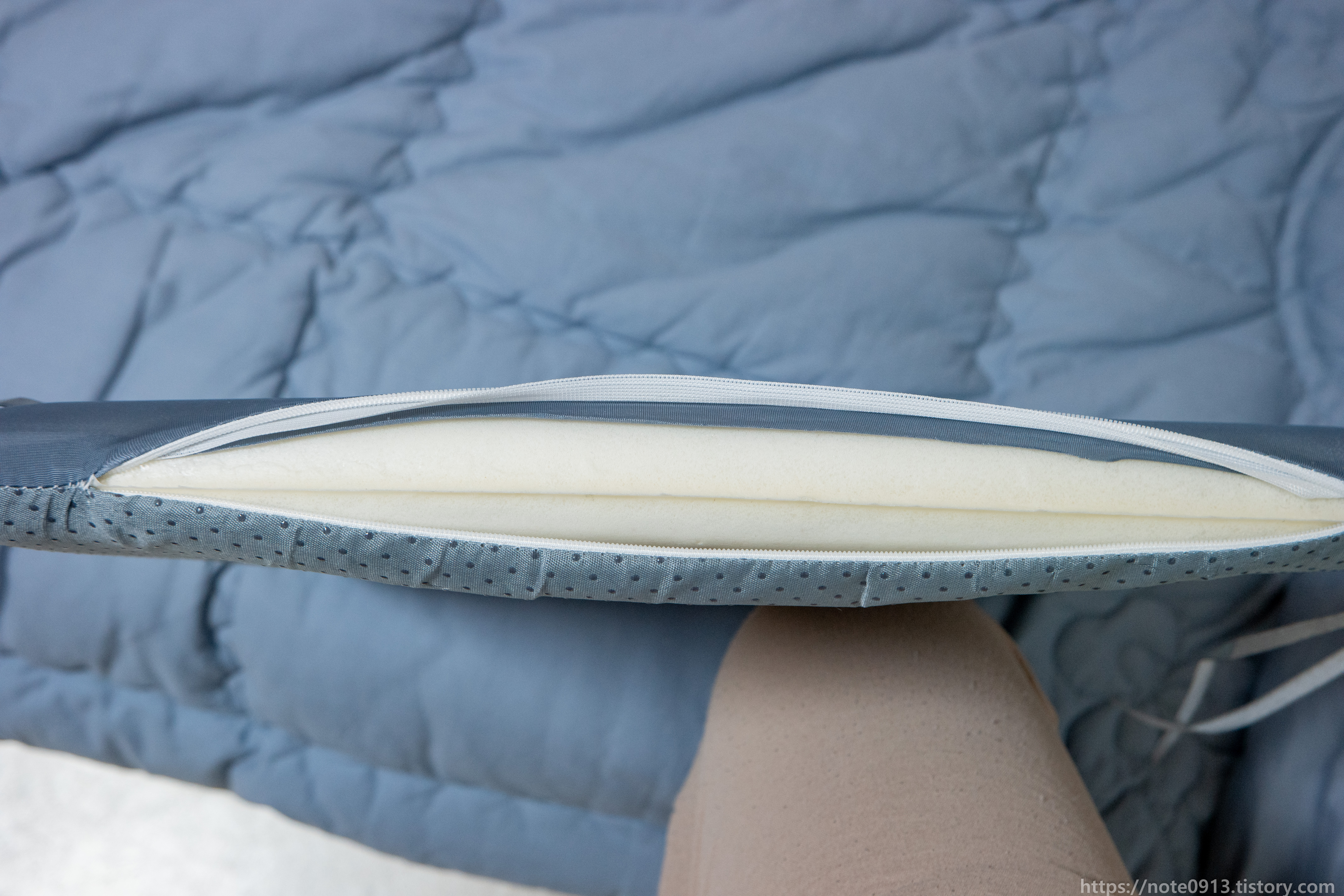 옆에는 지퍼가 있어서 커버 분리가능합니다. 메모리폼을 만져보니 살짝 딱딱한 느낌이라서 나쁘지 않은 것 같습니다.