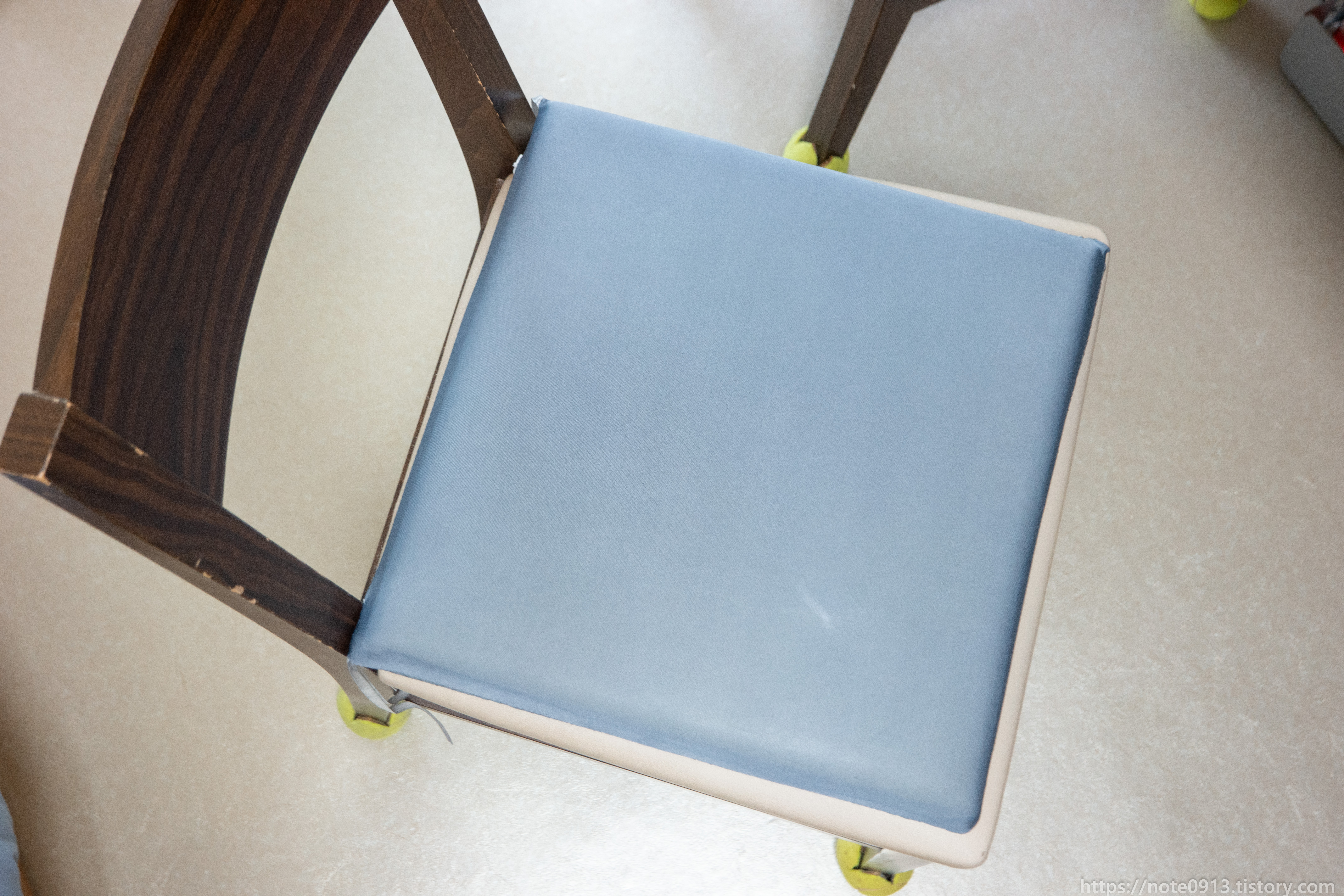 의자에 올려봤는데 딱 맞네요. 방석에 앉아보니 그래도 메모리폼이라 그런지 푹신합니다.