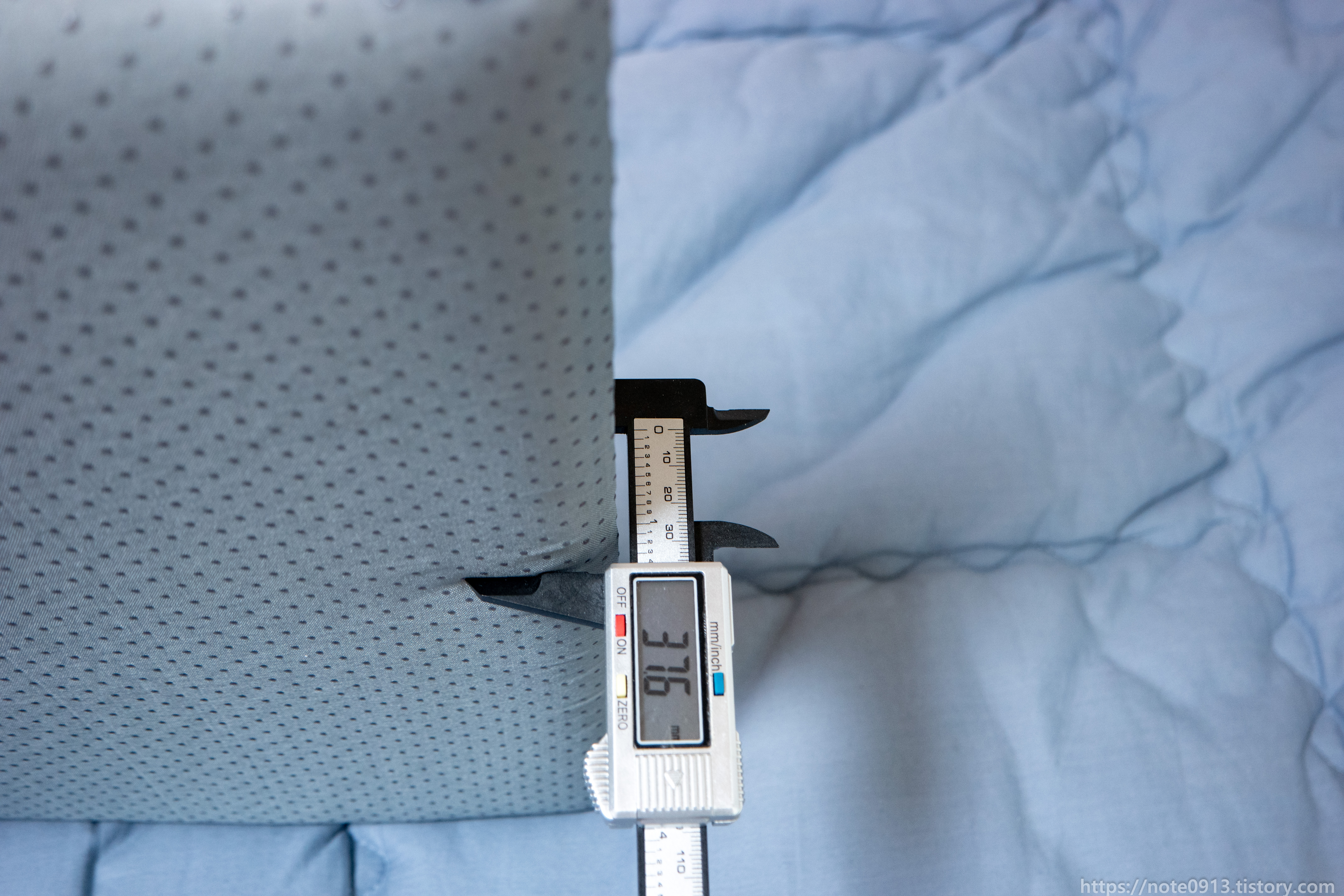 두께를 재보니 37.6mm 정도 나오네요. 4cm 두께를 구매했는데 이 정도면 봐줄만 합니다.