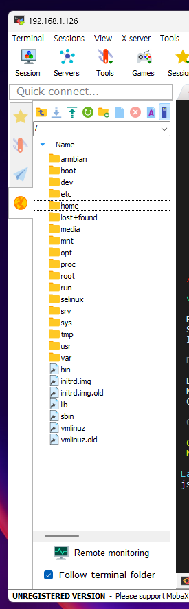 윈도우 SSH나 PuTTY와 다르게 좋은 점이 좌측에 원격서버의 디렉토리도 쉽게 확인할 수 있고 하단에 시스템 모니터링도 가능합니다.