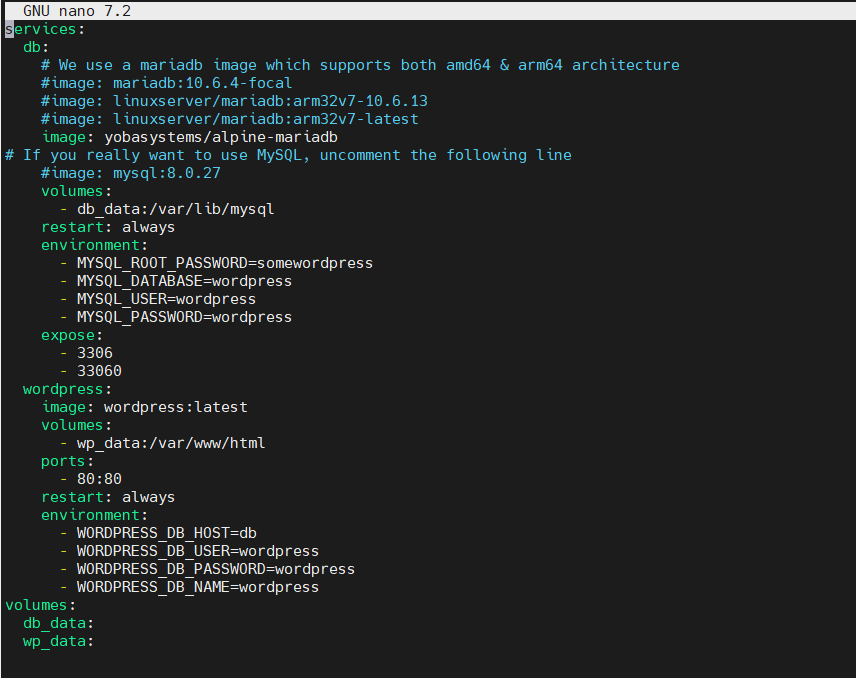 - MYSQL_ROOT_PASSWORD=somewordpress