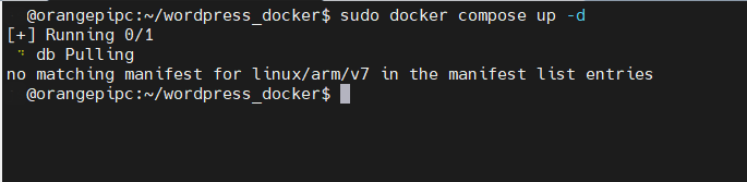 워드프레스를 설치하기위해 집에 남는 싱글보드 컴퓨터인 오렌지파이에 리눅스를 올리고 도커를 설치했습니다. 그리고 도커 컴포즈를 이용해 mariadb와 wordpress 이미지를 설치하려고 했으나 mariadb 설치에서 막혀버렸습니다.